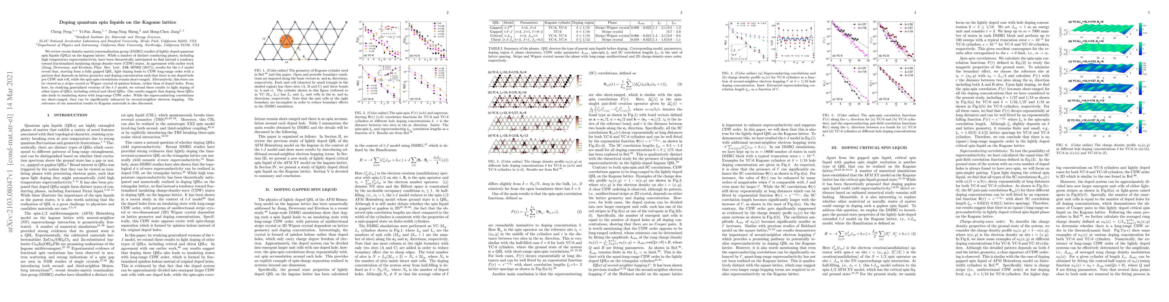 This paper reviews DMRG studies on lightly doped quantum spin liquids on the kagome lattice, finding that doping leads to insulating charge-density-wave states rather than anticipated conducting phases like high-temperature superconductivity. The study extends these findings to various types of quantum spin liquids, suggesting a general trend towards CDW orders upon doping.