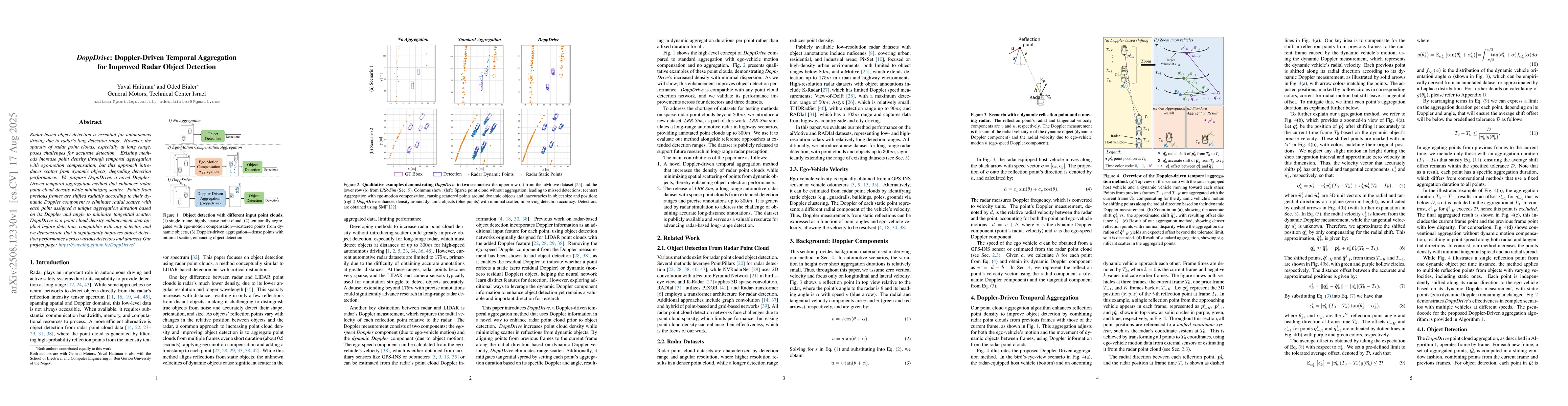Radar-based object detection is essential for autonomous driving due to radar's long detection range. However, the sparsity of radar point clouds, especially at long range, poses challenges for accurate detection. Existing methods increase point density through temporal aggregation with ego-motion compensation, but this approach introduces scatter from dynamic objects, degrading detection performance. We propose DoppDrive, a novel Doppler-Driven temporal aggregation method that enhances radar point cloud density while minimizing scatter. Points from previous frames are shifted radially according to their dynamic Doppler component to eliminate radial scatter, with each point assigned a unique aggregation duration based on its Doppler and angle to minimize tangential scatter. DoppDrive is a point cloud density enhancement step applied before detection, compatible with any detector, and we demonstrate that it significantly improves object detection performance across various detectors and datasets.