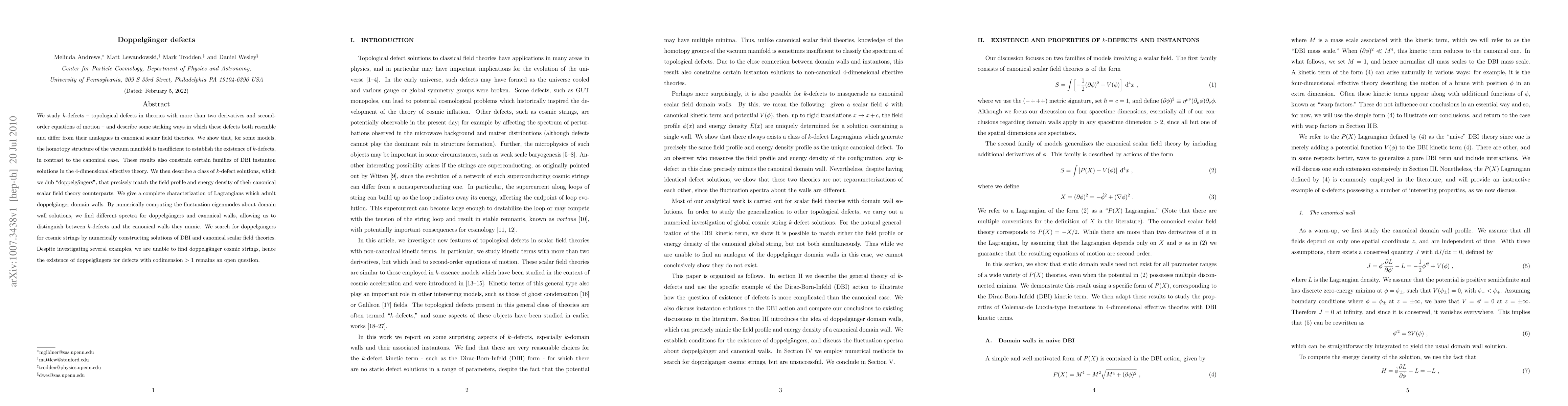 Researchers study k-defects in theories with multiple derivatives and discover doppelganger defects that mimic canonical scalar field theory walls, but differ in their energy density spectra, leaving the existence of such defects for higher codimension as an open question.