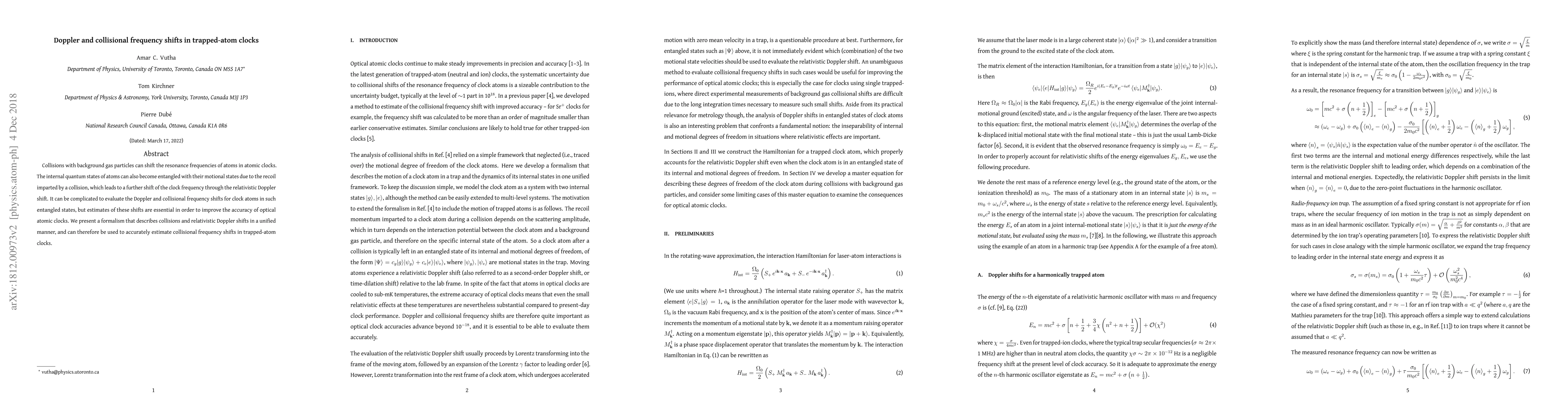 The paper presents a unified formalism to evaluate both Doppler and collisional frequency shifts in trapped-atom clocks, crucial for enhancing the precision of optical atomic clocks by accounting for shifts caused by background gas particle interactions and relativistic effects. This approach allows for accurate estimation of frequency shifts in entangled quantum states.