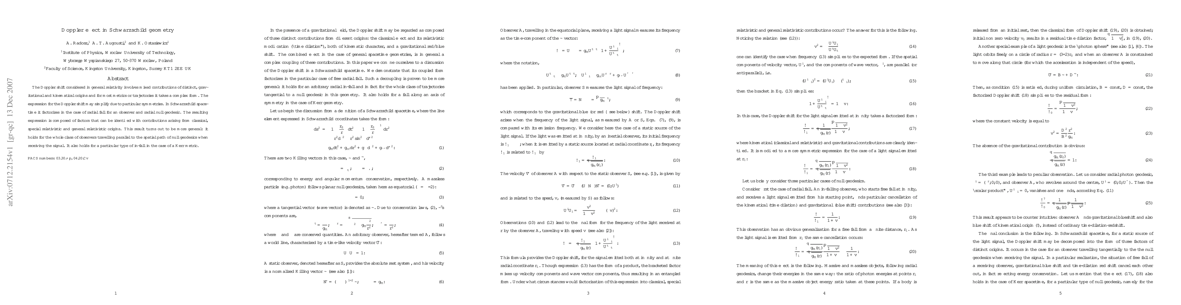 The Doppler shift considered in general relativity involves mixed contributions of distinct, gravitational and kinematical origins and for most metrics or trajectories it takes a complex form. The expression for the Doppler shift may simplify due to particular symmetries. In Schwarzschild spacetime it factorizes in the case of radial fall for an observer and radial null geodesic. The resulting expression is composed of factors that can be identified with contributions arising from classical, special relativistic and general relativistic origins. This result turns out to be more general: it holds for the whole class of observers travelling parallel to the spatial path of null geodesics when receiving the signal. It also holds for a particular type of in-fall in the case of a Kerr metric.