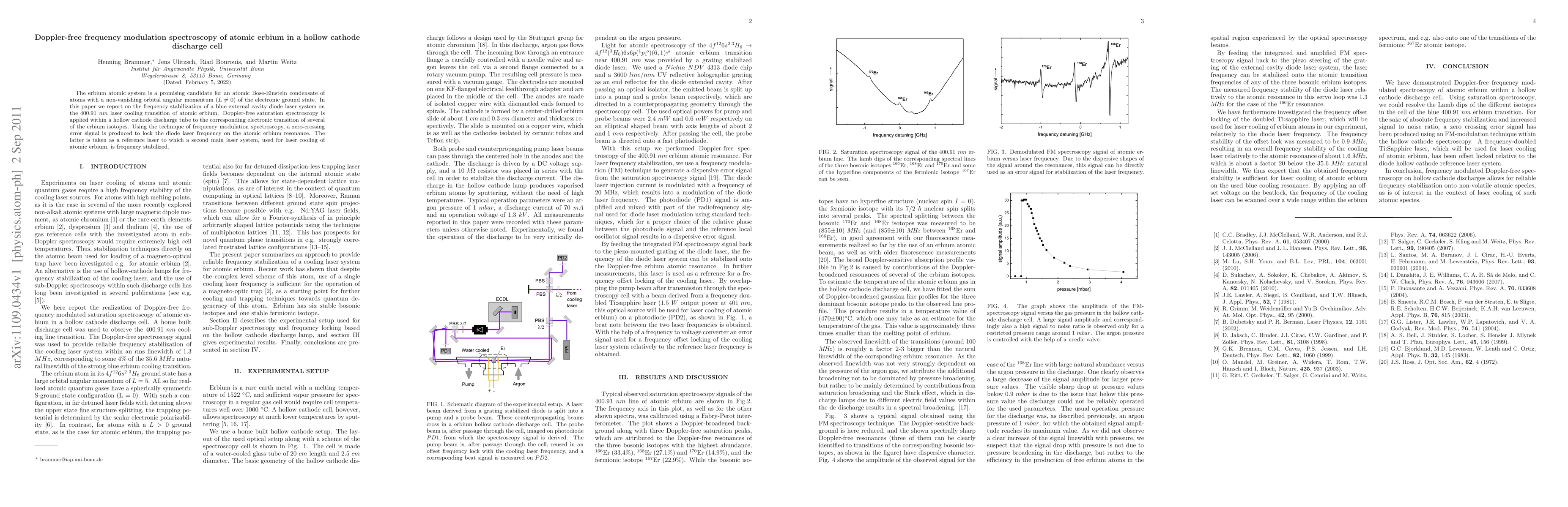 This paper reports on the stabilization of a diode laser on an erbium atomic transition using Doppler-free frequency modulation spectroscopy within a hollow cathode discharge. The technique locks the laser frequency to the atomic resonance for use as a reference in laser cooling experiments.