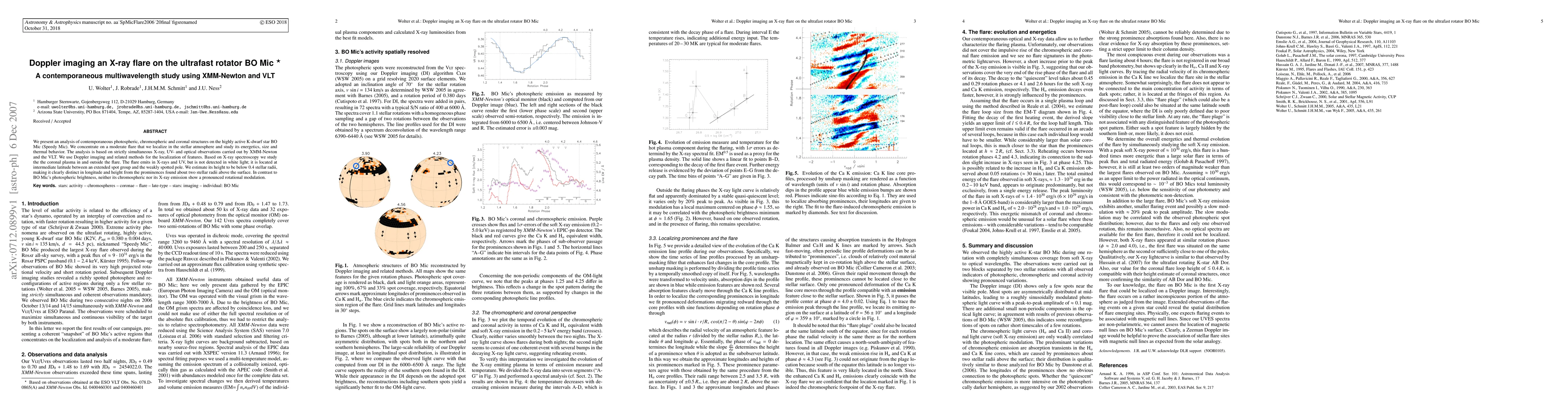 This study uses XMM-Newton and VLT to analyze a moderate X-ray flare on the K-dwarf star BO Mic, employing Doppler imaging to localize its features. The flare is detected in X-rays and UV but not in white light, and is found at a height below 0.4 stellar radii, distinct from the prominences.