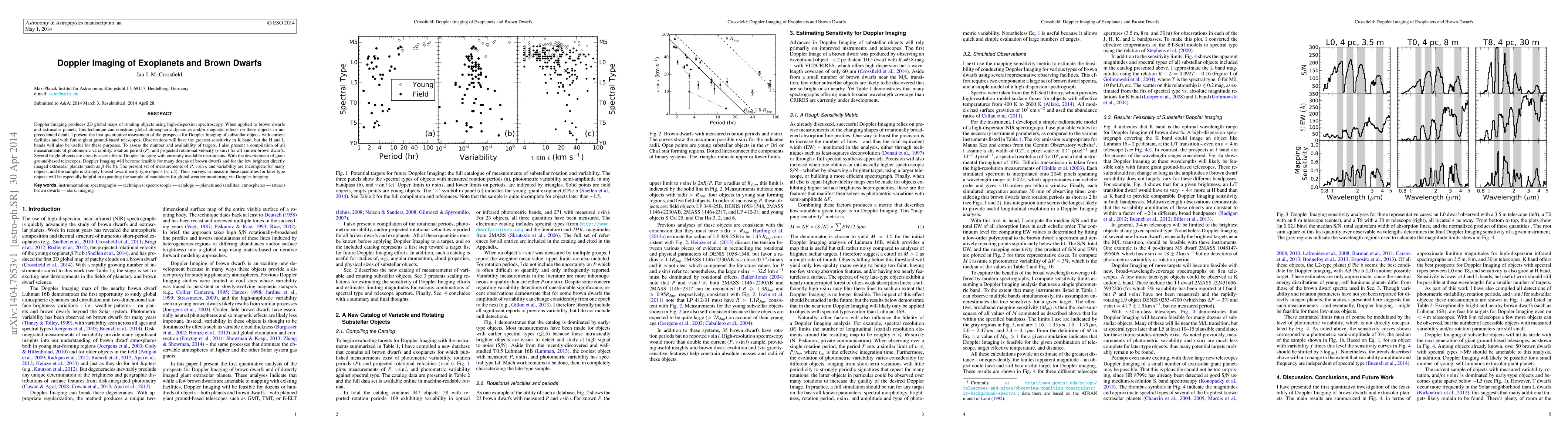 This paper assesses the potential of Doppler Imaging to create 2D maps of brown dwarfs and exoplanets, revealing atmospheric dynamics and magnetic effects. It highlights the K band's greatest sensitivity and identifies several currently accessible targets, while noting the need for future surveys to expand the sample of later-type objects for enhanced global weather monitoring.