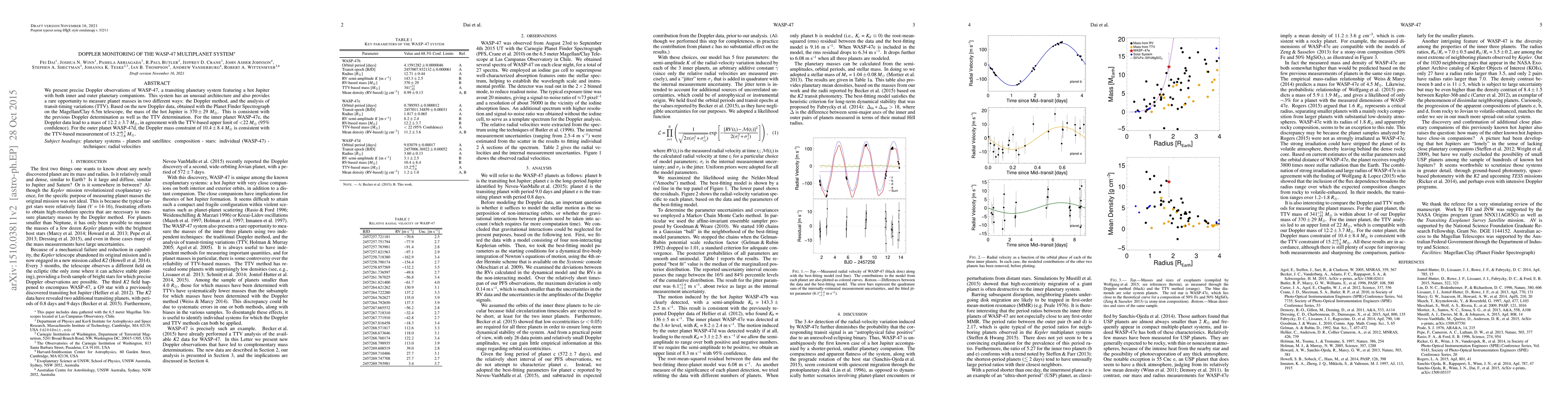 We present precise Doppler observations of WASP-47, a transiting planetary system featuring a hot Jupiter with both inner and outer planetary companions. This system has an unusual architecture and also provides a rare opportunity to measure planet masses in two different ways: the Doppler method, and the analysis of transit-timing variations (TTV). Based on the new Doppler data, obtained with the Planet Finder Spectrograph on the Magellan/Clay 6.5m telescope, the mass of the hot Jupiter is $370 \pm 29~M_{\oplus}$. This is consistent with the previous Doppler determination as well as the TTV determination. For the inner planet WASP-47e, the Doppler data lead to a mass of $12.2\pm 3.7~ M_{\oplus}$, in agreement with the TTV-based upper limit of $<$22~$M_{\oplus}$ ($95\%$ confidence). For the outer planet WASP-47d, the Doppler mass constraint of $10.4\pm 8.4~M_{\oplus}$ is consistent with the TTV-based measurement of $15.2^{+6.7}_{-7.6}~ M_{\oplus}$.