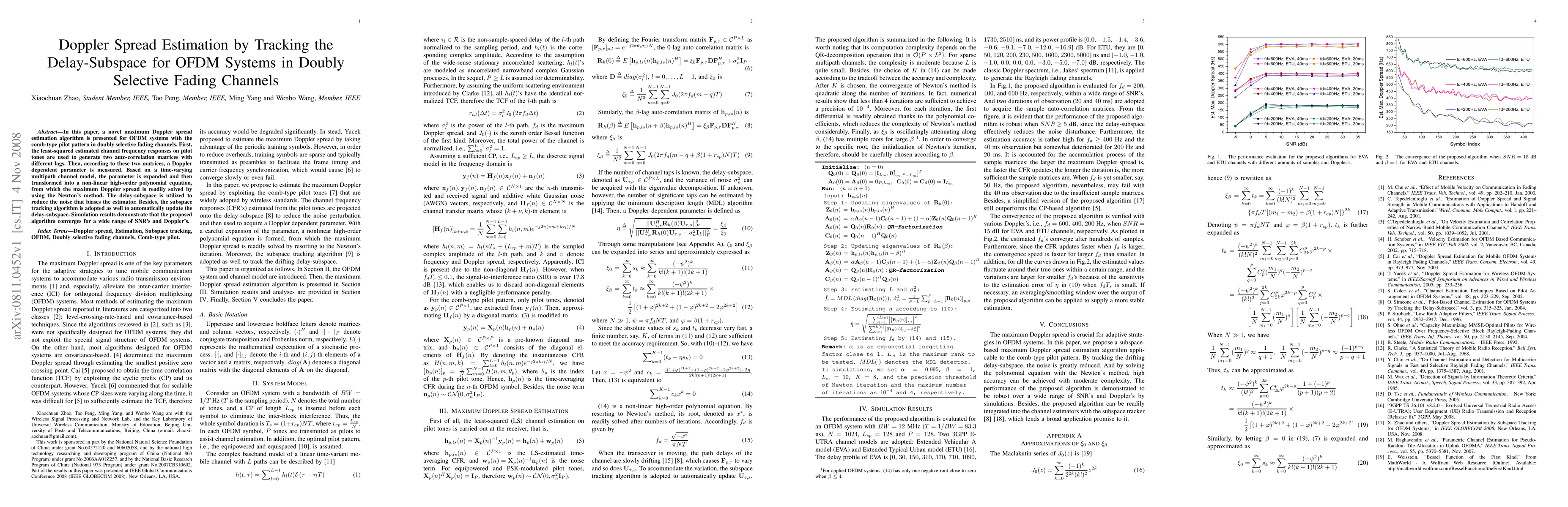 This paper introduces a new method to estimate maximum Doppler spread in OFDM systems using doubly selective fading channels. It tracks the changing delay subspace of these channels and converts the Doppler-dependent parameter into a polynomial equation, solving for maximum Doppler spread using Newton's method. The effectiveness of this algorithm is shown through simulations.
