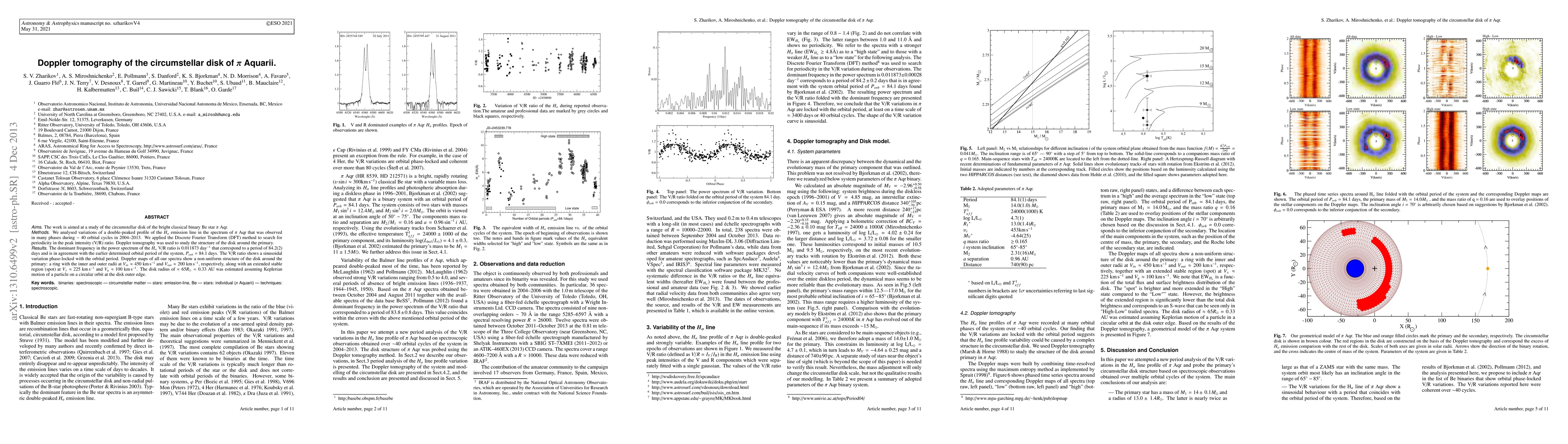 Researchers used Doppler tomography to study the disk of the Be star { au} Aquarii, finding a ring-shaped structure around the primary with an inner radius of 450 km/s and outer radius of 200 km/s.