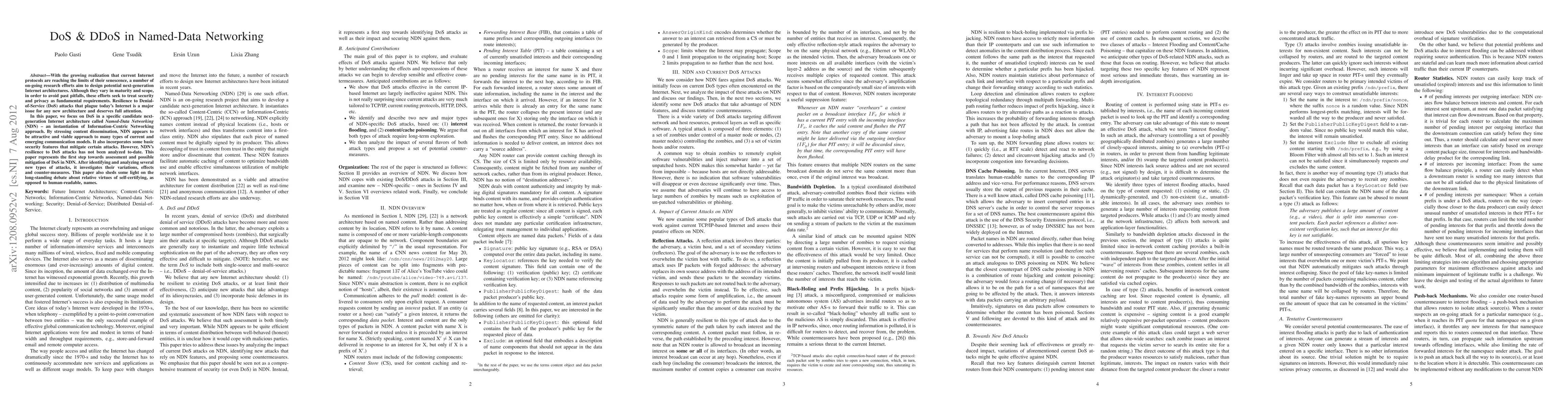 This paper investigates resilience to Denial-of-Service (DoS) attacks in Named-Data Networking (NDN), a next-generation Internet architecture, identifying new types of attacks and proposed counter-measures.