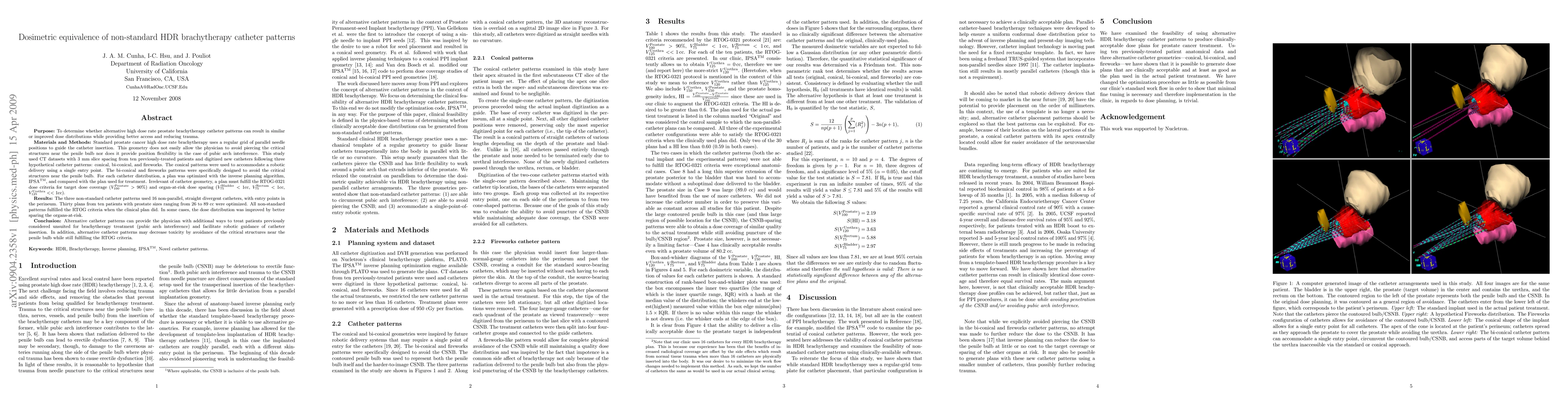This study investigates whether alternative high dose rate (HDR) brachytherapy catheter patterns can improve dose distribution and reduce trauma compared to standard parallel needle positions. Results show that non-standard patterns, such as conical, bi-conical, and fireworks, can meet RTOG dose criteria and sometimes better spare organs-at-risk, offering benefits for patients with pubic arch interference and facilitating robotic guidance.
