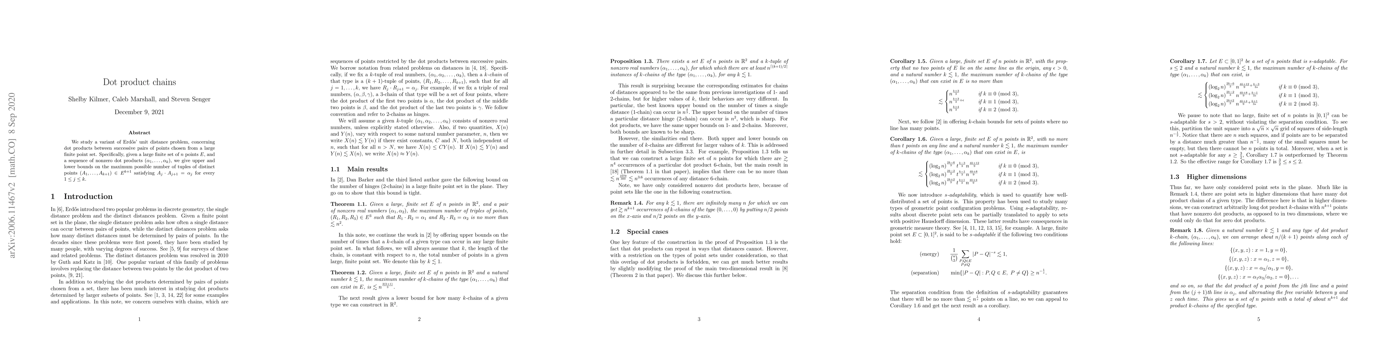 We study a variant of Erd\H os' unit distance problem, concerning dot products between successive pairs of points chosen from a large finite point set. Specifically, given a large finite set of $n$ points $E$, and a sequence of nonzero dot products $(\alpha_1,\ldots,\alpha_k)$, we give upper and lower bounds on the maximum possible number of tuples of distinct points $(A_1,\dots, A_{k+1})\in E^{k+1}$ satisfying $A_j \cdot A_{j+1}=\alpha_j$ for every $1\leq j \leq k$.
