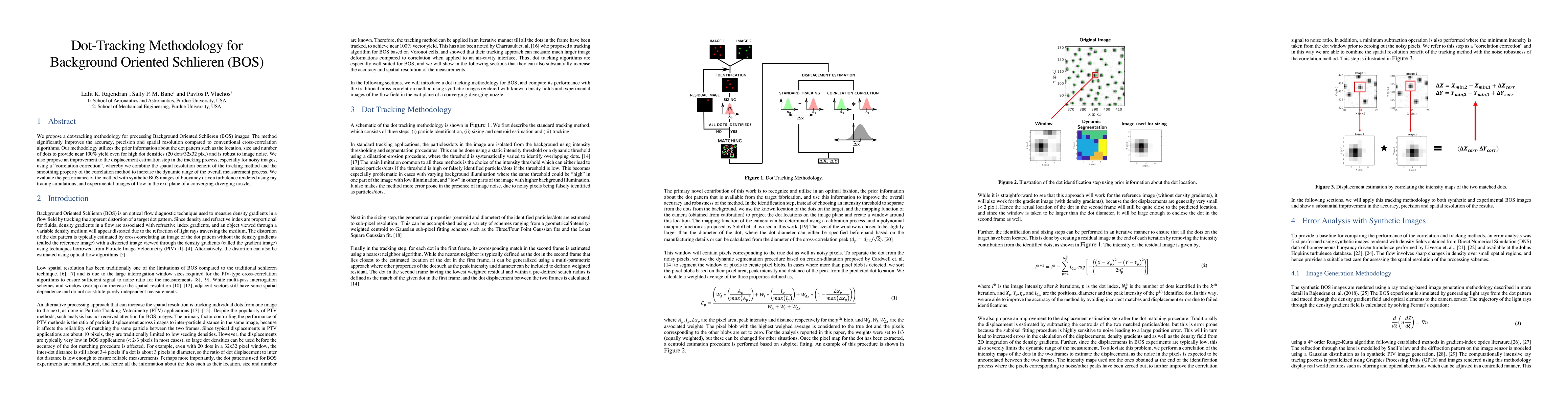 This paper introduces a dot-tracking methodology for processing Background Oriented Schlieren (BOS) images, which enhances accuracy, precision, and spatial resolution over traditional cross-correlation techniques. The method leverages prior dot information and a "correlation correction" to improve displacement estimation, especially in noisy conditions.