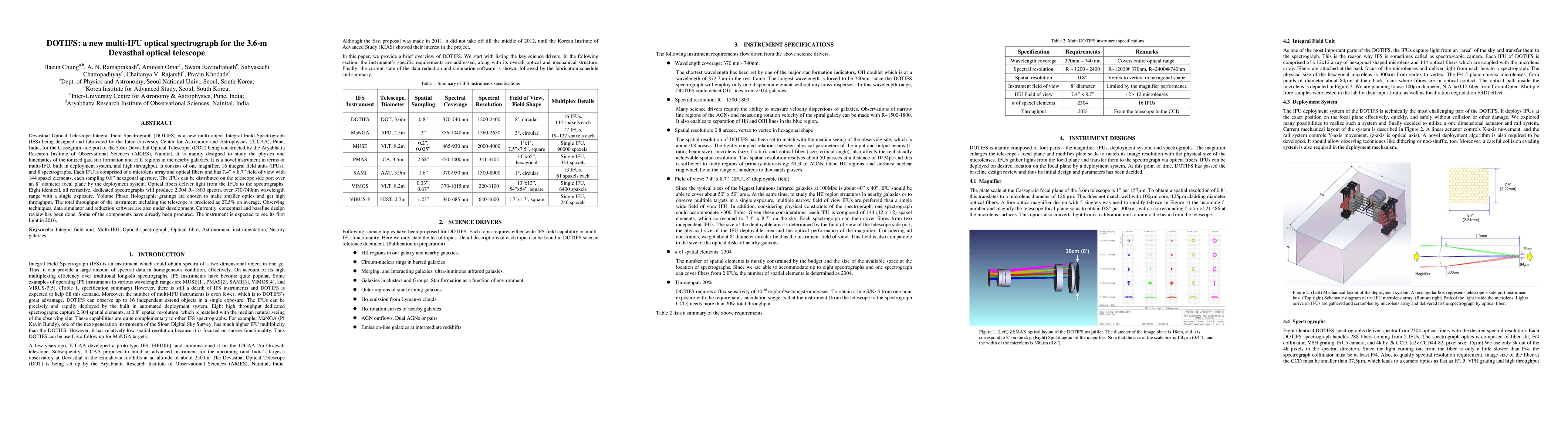 The DOTIFS instrument is a new multi-object spectrograph designed to study ionized gas, star formation, and H II regions in nearby galaxies using the 3.6m Devasthal Optical Telescope.