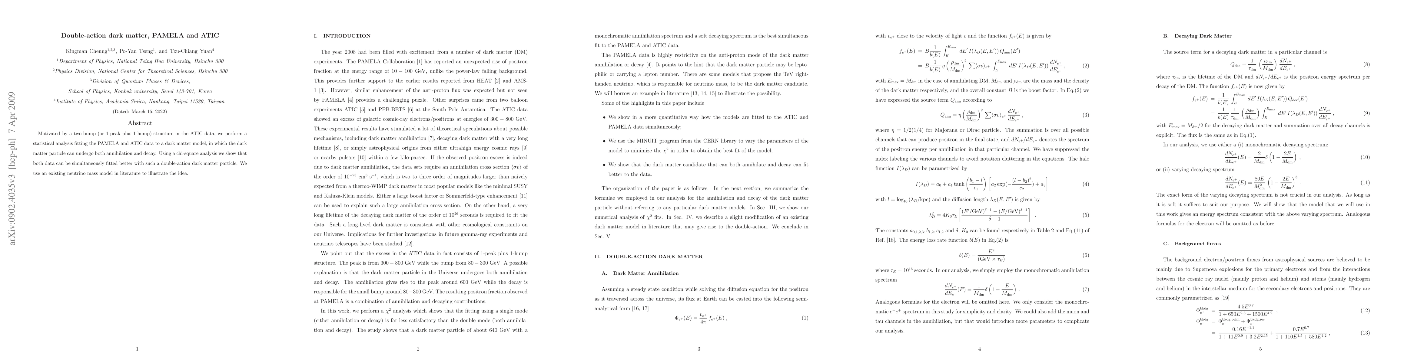 This paper investigates a dark matter model where particles can both annihilate and decay, fitting PAMELA and ATIC data to this model. The analysis demonstrates that this double-action dark matter can better explain the observed two-bump structure in ATIC data.