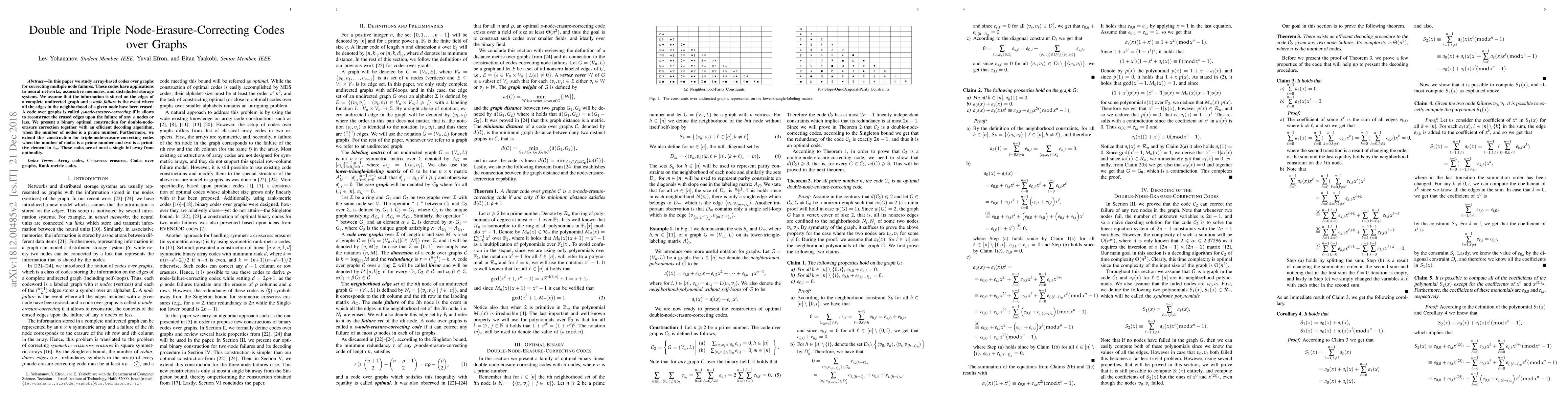 Researchers have developed efficient codes for correcting multiple node failures in neural networks, associative memories, and distributed storage systems, achieving optimal performance when the number of nodes is prime.