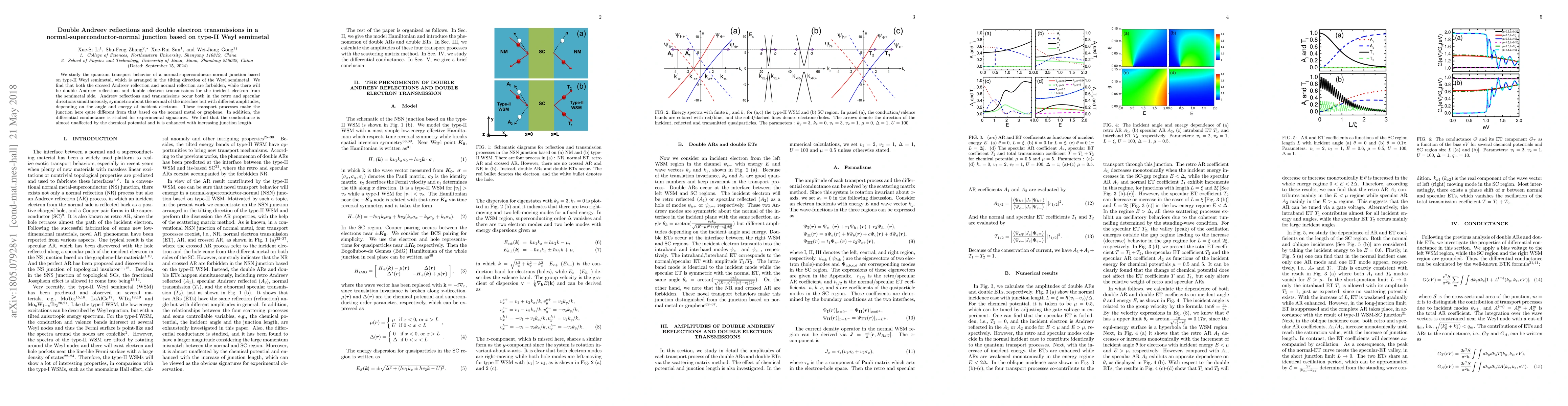 Title: Double Andreev reflections and double electron transmissions in a normal-superconductor-normal junction based on type-II Weyl semimetal Summary: The study reveals unique quantum transport phenomena in a normal-superconductor-normal junction utilizing type-II Weyl semimetal, characterized by double Andreev reflections and transmissions, and minimal impact of chemical potential on differential conductance, highlighting distinct behavior from conventional junctions.