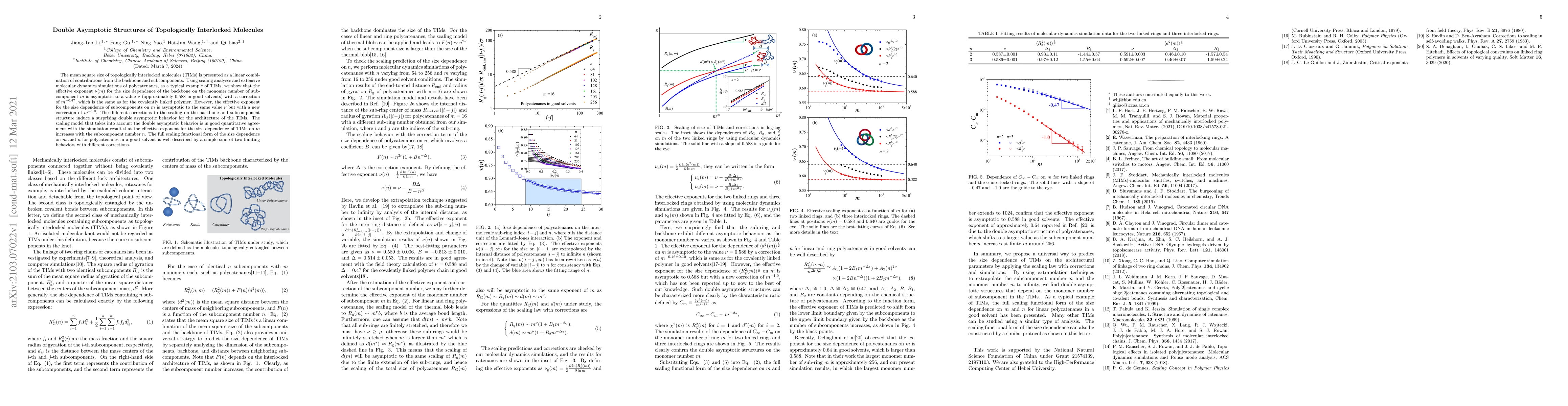 This paper investigates the double asymptotic scaling behavior of topologically interlocked molecules (TIMs) using polycatenanes as examples. It reveals that the size dependence of the backbone and subcomponents exhibits different corrections, leading to a surprising double asymptotic structure, which is well captured by a scaling model.