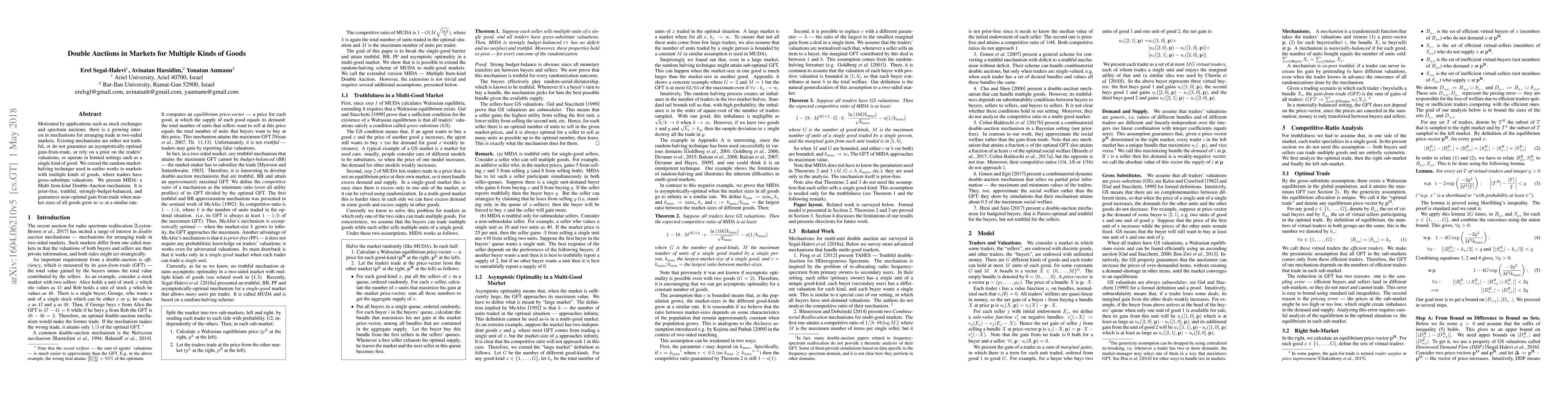 This paper proposes MIDA, a Multi Item-kind Double-Auction mechanism for trading multiple kinds of goods, addressing limitations of existing mechanisms by being prior-free, truthful, and ensuring near-optimal trade gains as market sizes grow. The mechanism extends the random market-halving technique to handle gross-substitute valuations across diverse goods.