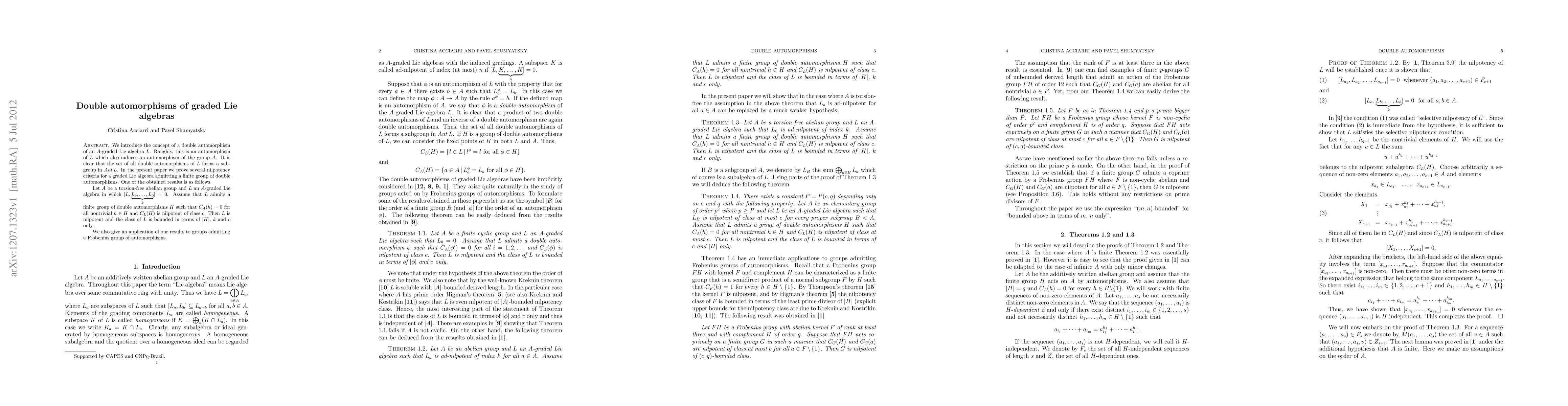 This paper introduces the concept of double automorphisms for A-graded Lie algebras, where such automorphisms both act on the algebra and its grading group A. The authors prove nilpotency criteria for graded Lie algebras with finite groups of these double automorphisms and apply their findings to groups with Frobenius automorphisms.