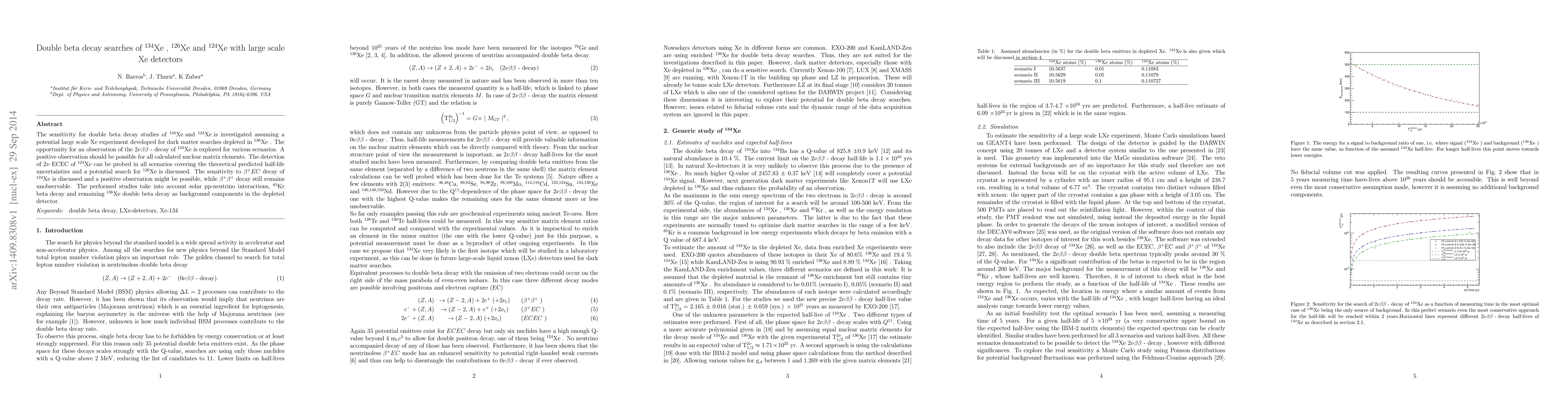 This research is significant as it analyzes the potential of large-scale Xe detectors, originally designed for dark matter searches, to perform double beta decay studies on Xe-134, Xe-124, and Xe-126 isotopes. The findings contribute to understanding the feasibility of detecting neutrino-accompanied double beta decays in future experiments.