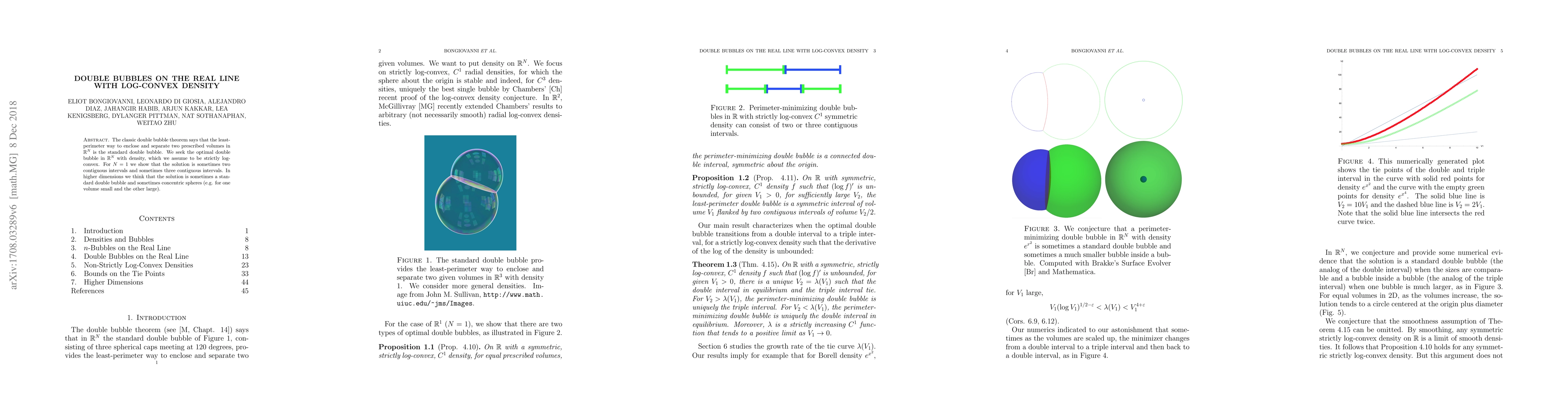 The classic double bubble theorem says that the least-perimeter way to enclose and separate two prescribed volumes in $\mathbb{R}^N$ is the standard double bubble. We seek the optimal double bubble in $\mathbb{R}^N$ with density, which we assume to be strictly log-convex. For $N=1$ we show that the solution is sometimes two contiguous intervals and sometimes three contiguous intervals. In higher dimensions, we think that the solution is sometimes a standard double bubble and sometimes concentric spheres (e.g. for one volume small and the other large).
