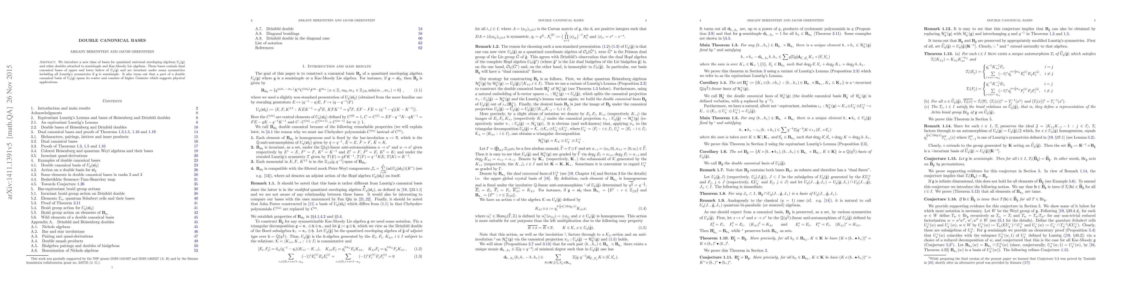The paper introduces a new class of double canonical bases for quantized universal enveloping algebras and associated doubles, containing dual canonical bases and invariant under Lusztig's symmetries. A portion of these bases spans the center of the algebra.