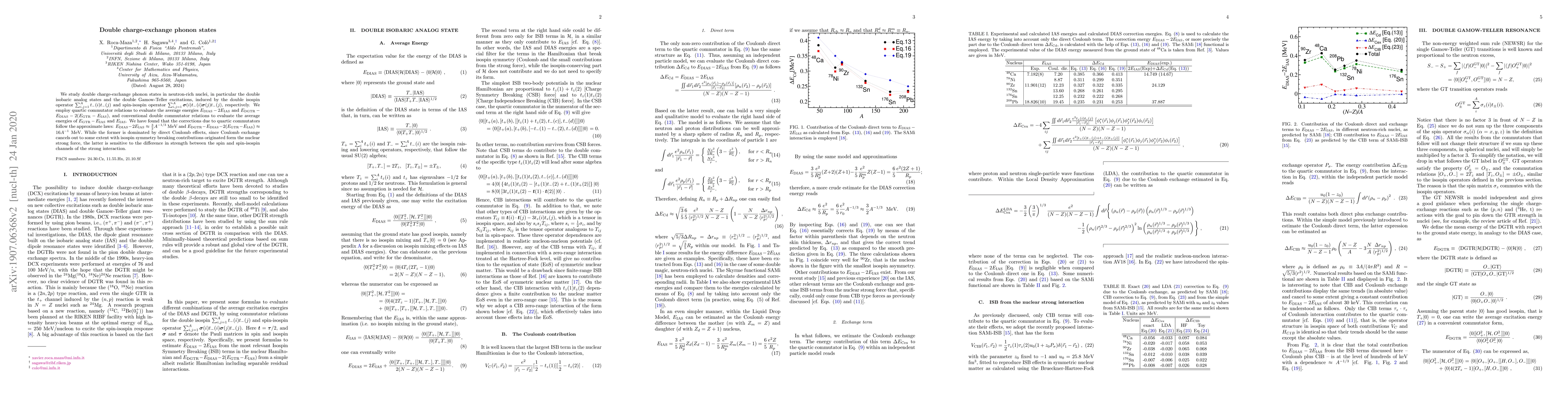 We study double charge-exchange phonon states in neutron-rich nuclei, in particular the double isobaric analog states and the double Gamow-Teller excitations, induced by the double isospin operator $\sum_{i,j=1}^At_-(i) t_-(j)$ and spin-isospin operator $\sum_{i,j=1}^A{\sigma}(i) t_-(i){\sigma}(j) t_-(j)$, respectively. We employ quartic commutator relations to evaluate the average energies $E_{\rm DIAS} - 2E_{\rm IAS}$ and $E_{\rm DGTR}-E_{\rm DIAS} - 2(E_{\rm GTR}-E_{\rm IAS})$, and conventional double commutator relations to evaluate the average energies of $E_{\rm GTR}-E_{\rm IAS}$ and $E_{\rm IAS}$. We have found that the corrections due to quartic commutators follow the approximate laws: $E_{\rm DIAS} - 2E_{\rm IAS}\approx \frac{3}{2} A^{-1/3}$ MeV and $E_{\rm DGTR}-E_{\rm DIAS} - 2(E_{\rm GTR}-E_{\rm IAS})\approx 16 A^{-1}$ MeV. While the former is dominated by direct Coulomb effects, since Coulomb exchange cancels out to some extent with isospin symmetry breaking contributions originated form the nuclear strong force, the latter is sensitive to the difference in strength between the spin and spin-isospin chanels of the strong interaction.