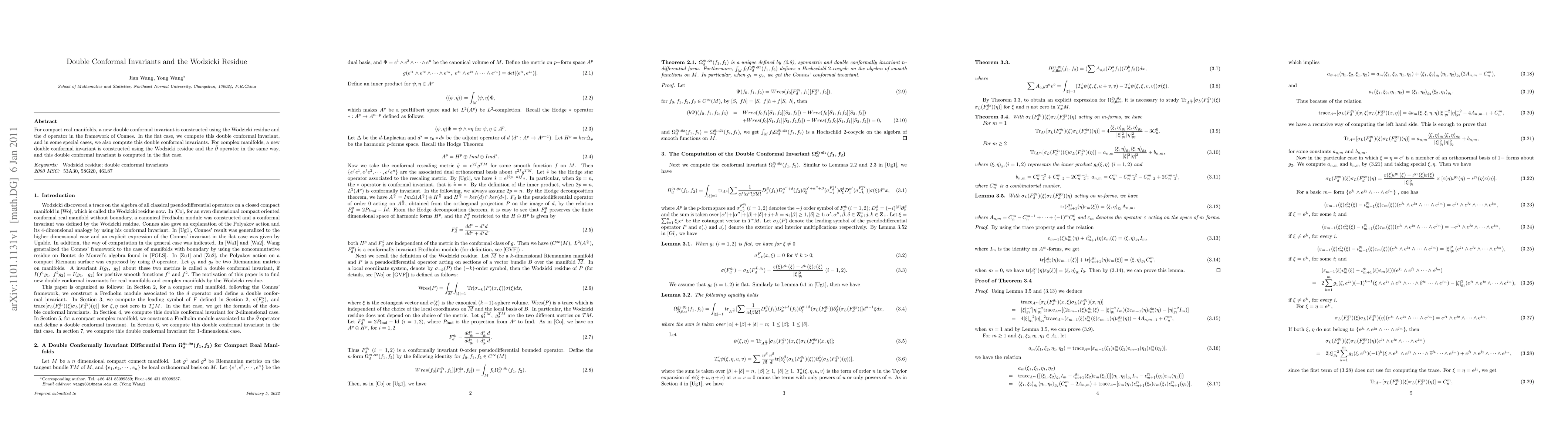 For compact real manifolds, a new double conformal invariant is constructed using the Wodzicki residue and the $d$ operator in the framework of Connes. In the flat case, we compute this double conformal invariant, and in some special cases, we also compute this double conformal invariants. For complex manifolds, a new double conformal invariant is constructed using the Wodzicki residue and the $\bar{\partial}$ operator in the same way, and this double conformal invariant is computed in the flat case.