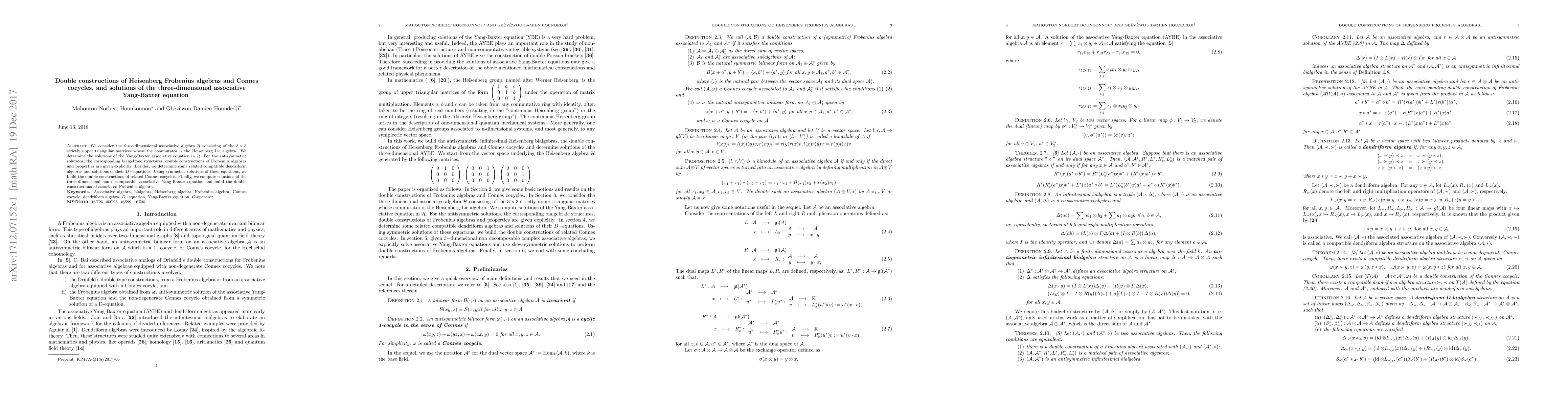 This paper explores solutions to the three-dimensional associative Yang-Baxter equation in Heisenberg Lie algebra-based algebras. It details constructions of Frobenius algebras and Connes cocycles linked to these solutions, alongside compatible dendriform algebras and their related equations.