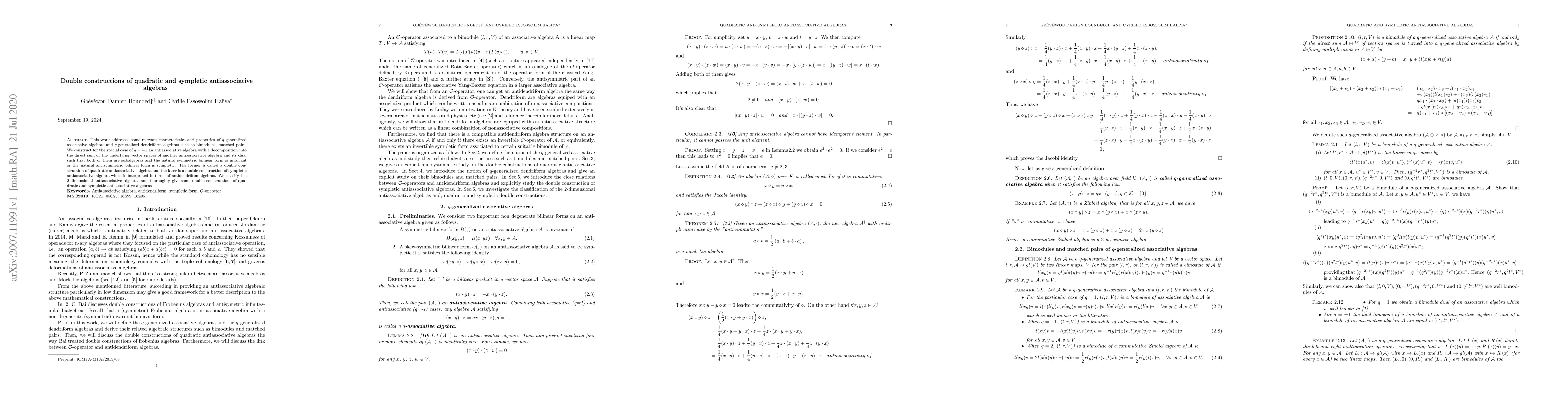 Researchers develop a method to create new antiassociative algebras by combining two existing ones in a specific way, leading to the discovery of double constructions for quadratic and sympletic algebras.