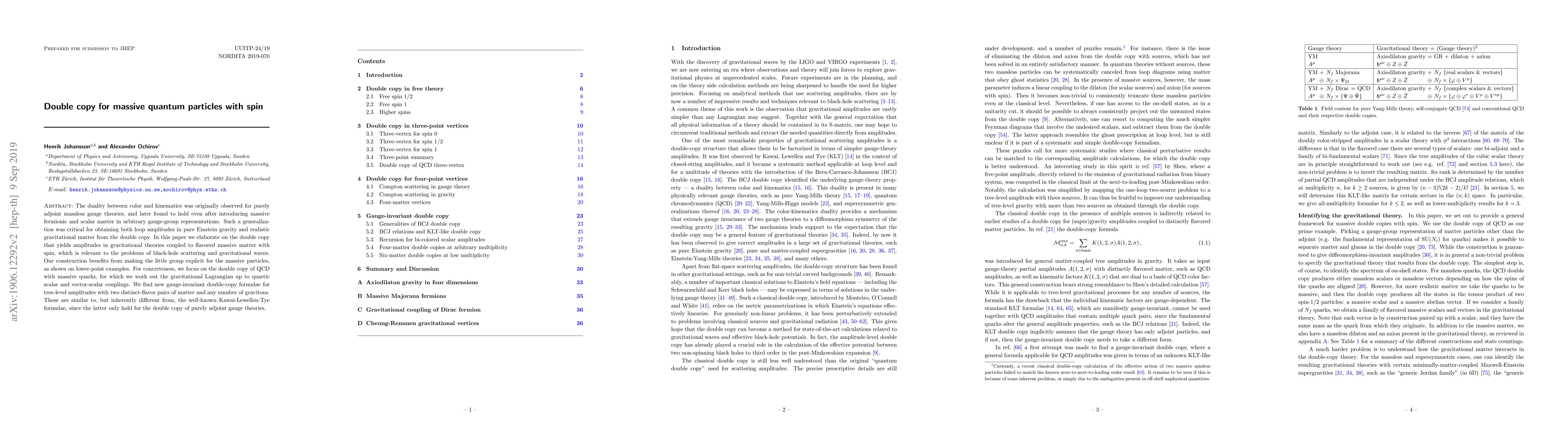 This paper extends the double copy construction to massive quantum particles with spin, providing new gauge-invariant formulae for gravitational amplitudes coupled to flavored massive matter. The work focuses on the QCD double copy with massive quarks, offering a novel approach to amplitudes involving black-hole scattering and gravitational waves.