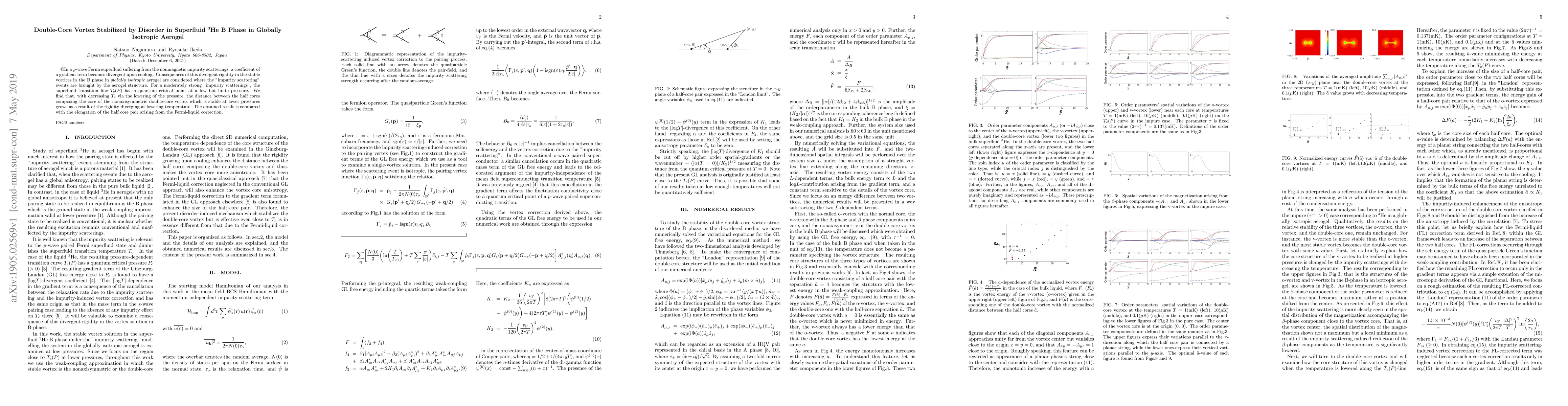 In a p-wave Fermi superfluid suffering from the nonmagnetic impurity scatterings, a coefficient of a gradient term becomes divergent upon cooling. Consequences of this divergent rigidity in the stable vortices in the B phase in globally isotropic aerogel are considered where the "impurity scattering" events are brought by the aerogel structure. For a moderately strong "impurity scatterings", the superfluid transition line T_c(P) has a quantum critical point at a low but finite pressure. We find that, with decreasing T_c via the lowering of the pressure, the distance between the half cores composing the core of the nonaxisymmetric double-core vortex which is stable at lower pressures grows as a result of the rigidity diverging at lowering temperature. The obtained result is compared with the elongation of the half core pair arising from the Fermi-liquid correction.
