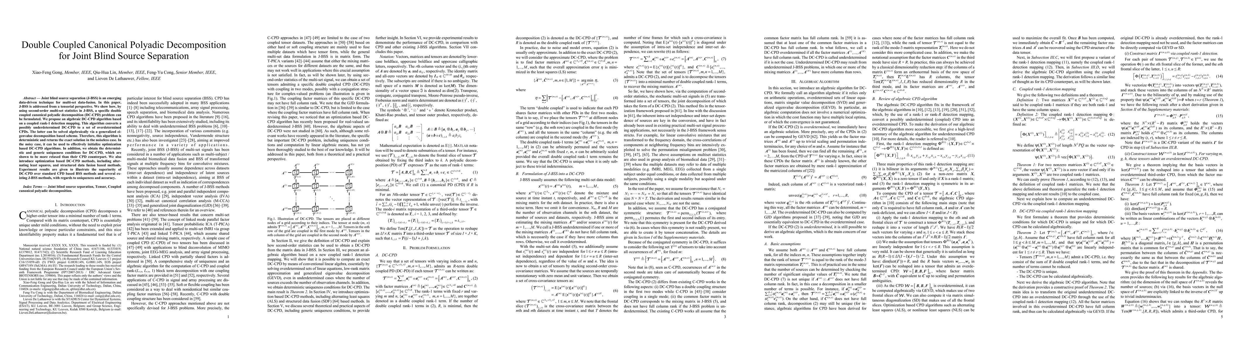 This paper proposes a double coupled canonical polyadic decomposition (DC-CPD) algorithm for joint blind source separation (J-BSS) using second-order multi-set statistics. The algorithm converts underdetermined DC-CPD to overdetermined CPDs, providing a deterministic solution in noiseless cases and effective initialization in noisy scenarios.