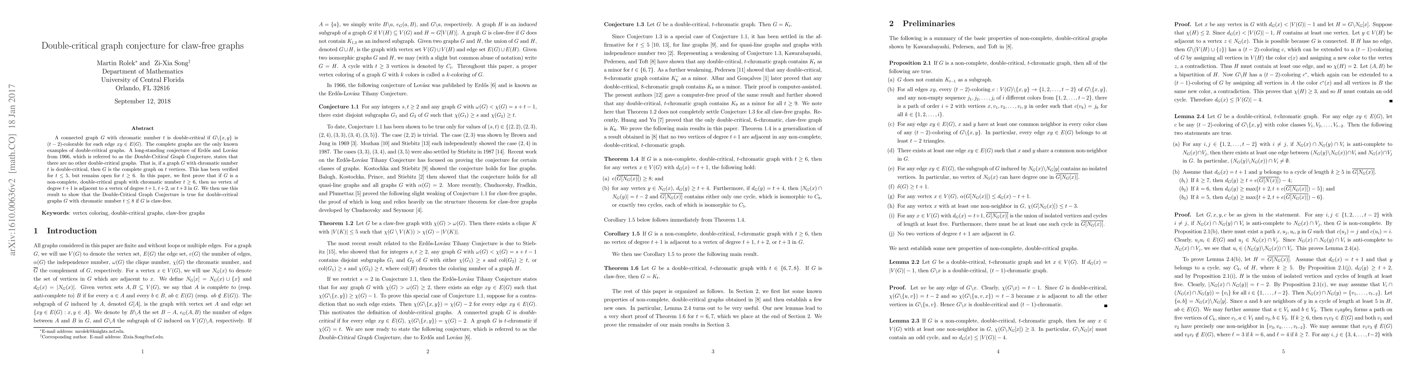 This paper proves that non-complete, double-critical graphs with chromatic number $t \ge 6$ cannot have adjacent vertices of degrees $t+1$, $t+2$, or $t+3$. It further establishes the Double-Critical Graph Conjecture for claw-free graphs with chromatic number up to $t=8$.