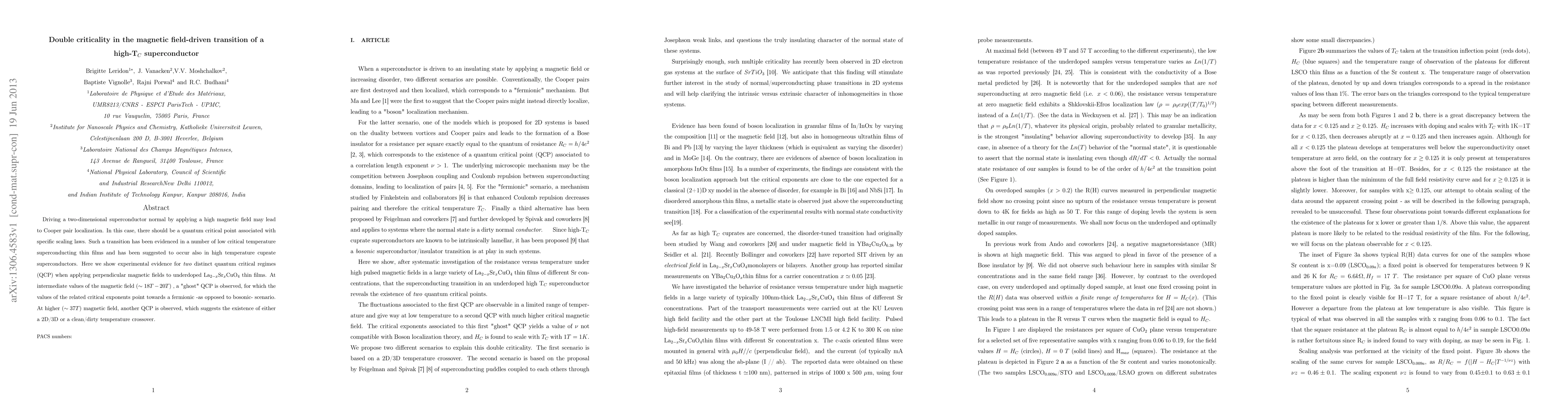 This research demonstrates two distinct quantum critical points in underdoped La2-xSrxCuO4 thin films under perpendicular magnetic fields, revealing a "ghost" QCP at intermediate fields (18T-20T) with fermionic characteristics and a second QCP at higher fields (around 37 T) suggesting a 2D/3D or clean/dirty crossover.