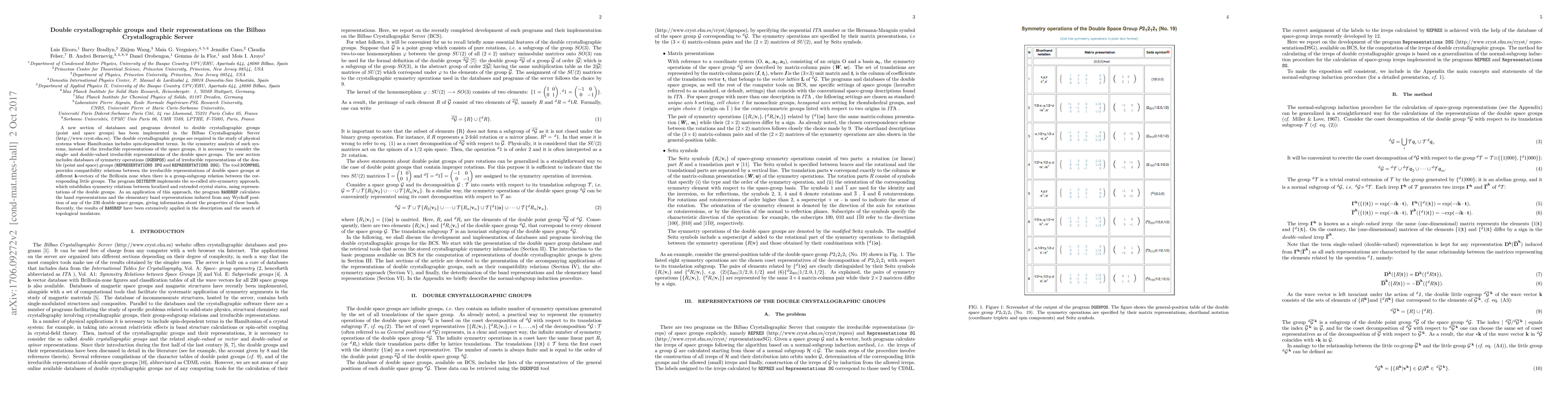 The Bilbao Crystallographic Server has introduced a new section for databases and tools on double crystallographic groups, essential for studying spin-dependent Hamiltonians. It includes databases for symmetry operations and irreducible representations, and tools for compatibility relations and site-symmetry approaches, notably applied in topological insulator research.