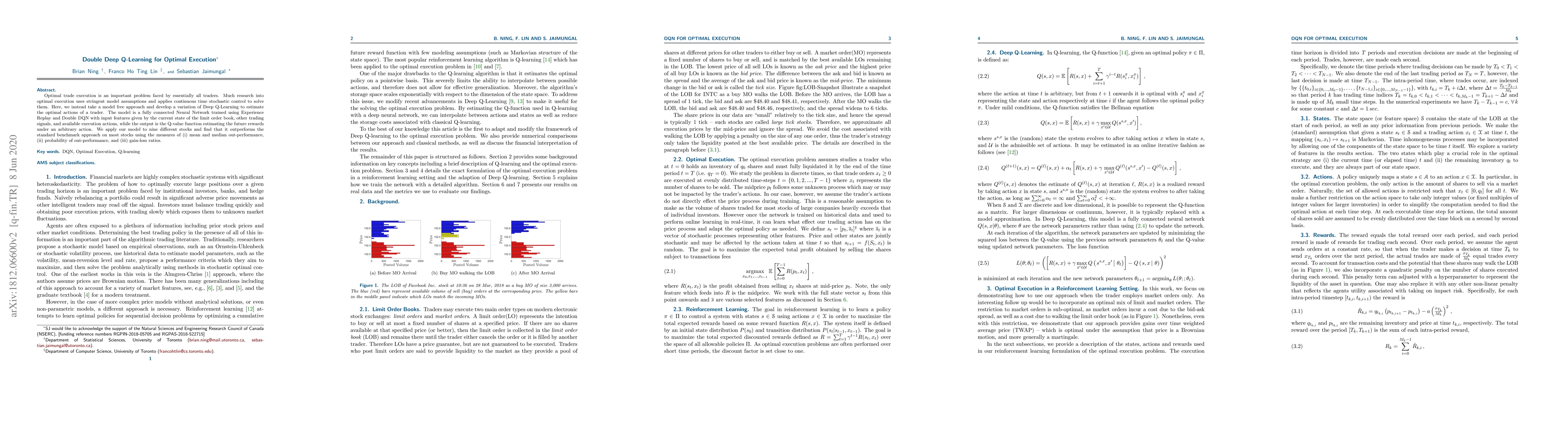 Optimal trade execution is an important problem faced by essentially all traders. Much research into optimal execution uses stringent model assumptions and applies continuous time stochastic control to solve them. Here, we instead take a model free approach and develop a variation of Deep Q-Learning to estimate the optimal actions of a trader. The model is a fully connected Neural Network trained using Experience Replay and Double DQN with input features given by the current state of the limit order book, other trading signals, and available execution actions, while the output is the Q-value function estimating the future rewards under an arbitrary action. We apply our model to nine different stocks and find that it outperforms the standard benchmark approach on most stocks using the measures of (i) mean and median out-performance, (ii) probability of out-performance, and (iii) gain-loss ratios.