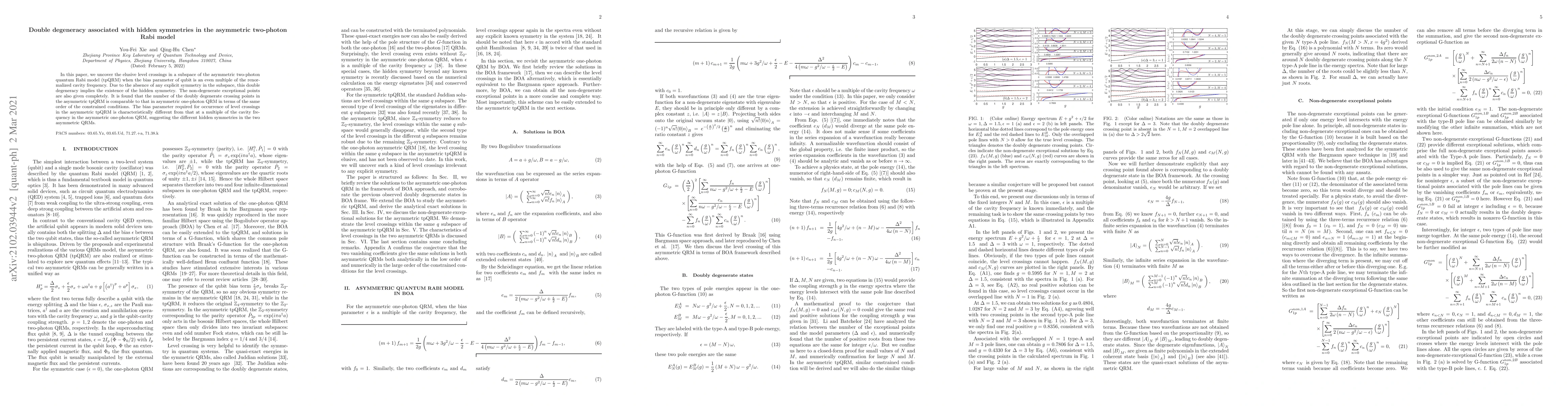 Researchers discovered hidden symmetries in an asymmetric two-photon quantum Rabi model, leading to double degeneracy in a subspace of the system. This finding suggests that even without explicit symmetry, certain conditions can give rise to unique patterns in quantum systems.