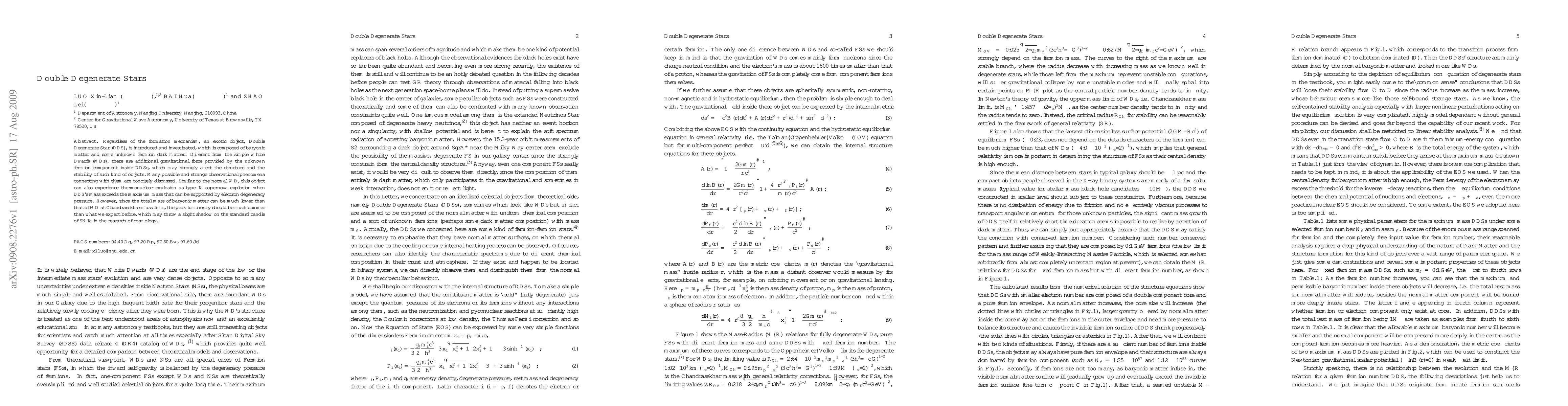 Regardless of the formation mechanism, an exotic object, Double Degenerate Star (DDS), is introduced and investigated, which is composed of baryonic matter and some unknown fermion dark matter. Different from the simple White Dwarfs (WDs), there are additional gravitational force provided by the unknown fermion component inside DDSs, which may strongly affect the structure and the stability of such kind of objects. Many possible and strange observational phenomena connecting with them are concisely discussed. Similar to the normal WD, this object can also experience thermonuclear explosion as type Ia supernova explosion when DDS's mass exceeds the maximum mass that can be supported by electron degeneracy pressure. However, since the total mass of baryonic matter can be much lower than that of WD at Chandrasekhar mass limit, the peak luminosity should be much dimmer than what we expect before, which may throw a slight shadow on the standard candle of SNIa in the research of cosmology.