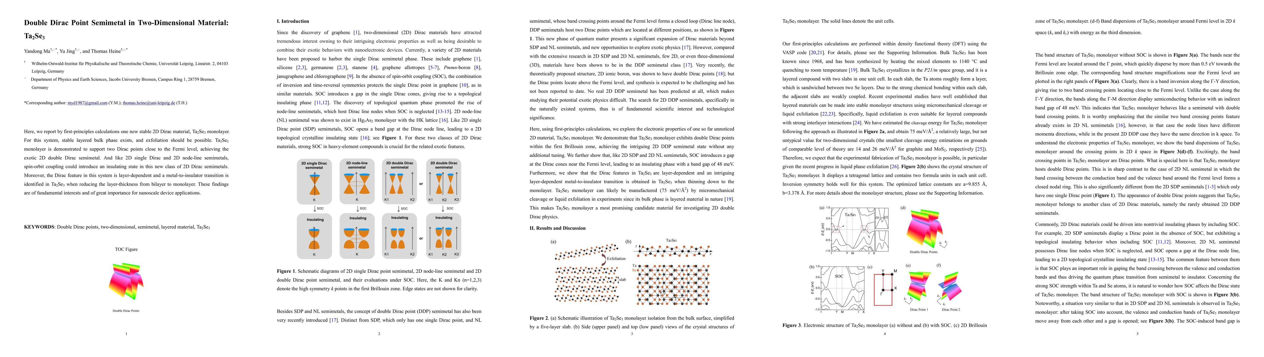 Researchers discovered a new 2D Dirac material, Ta2Se3 monolayer, which exhibits two Dirac points near the Fermi level, enabling double Dirac semimetal behavior with potential for nanoscale device applications.