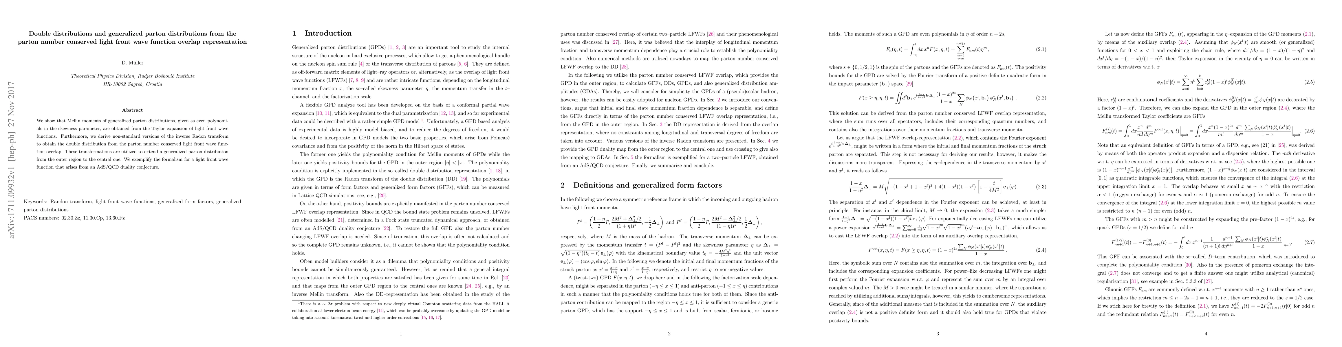 This paper demonstrates how Mellin moments of generalized parton distributions can be derived from the Taylor expansion of light front wave functions. It also introduces novel inverse Radon transforms to extract double distributions from the overlap of parton number conserved light front wave functions, extending the generalized parton distribution analysis.