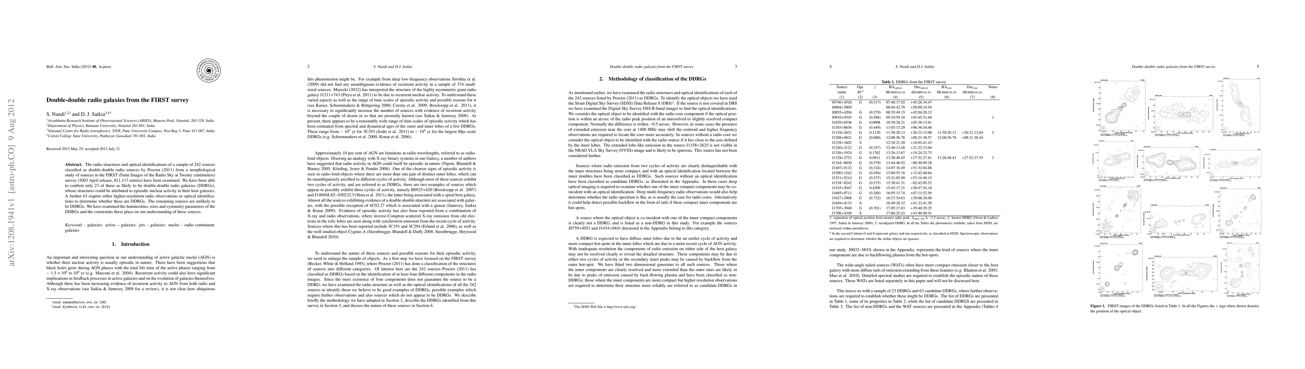 This study examines 242 double-double radio sources from the FIRST survey, confirming only 23 as likely double-double radio galaxies due to episodic nuclear activity. The remaining sources require higher-resolution observations or optical identifications to verify their classification.