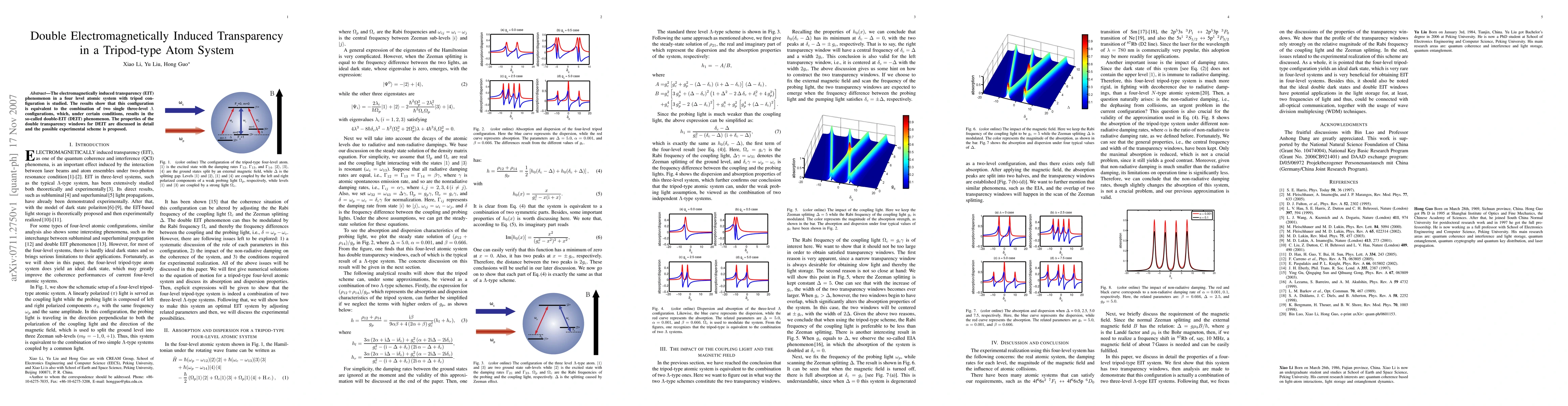 The main technical contribution of this research is the realization and demonstration of a four-level tripod-type EIT system, which has potential applications in quantum information processing and optical communication.