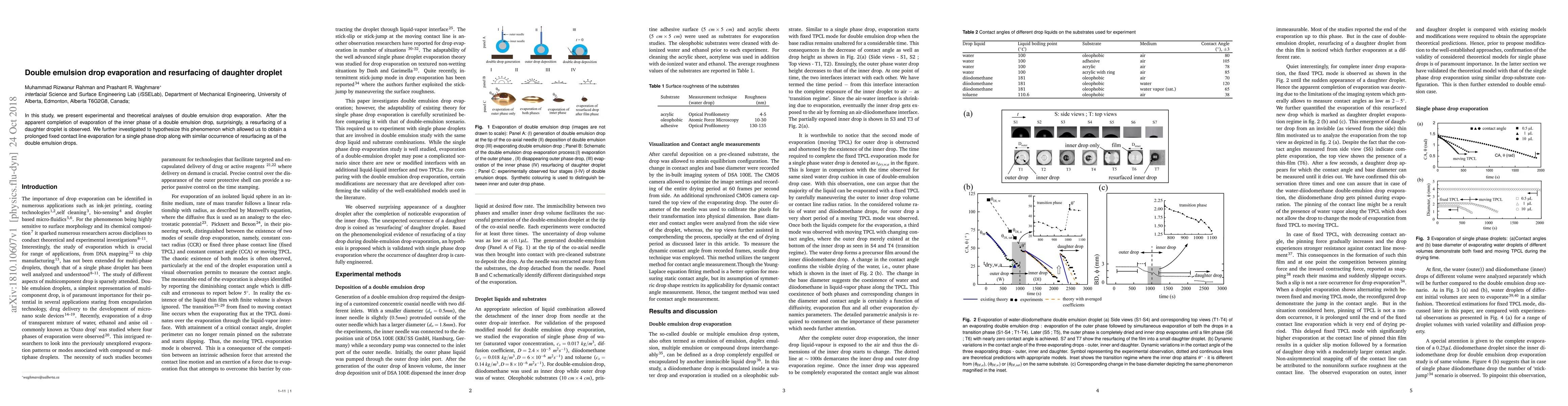This study investigates the evaporation of double emulsion drops, revealing the unexpected resurfacing of a daughter droplet after the inner phase evaporates. Theoretical and experimental analyses suggest prolonged fixed contact line evaporation in single phase drops can also lead to similar resurfacing phenomena.
