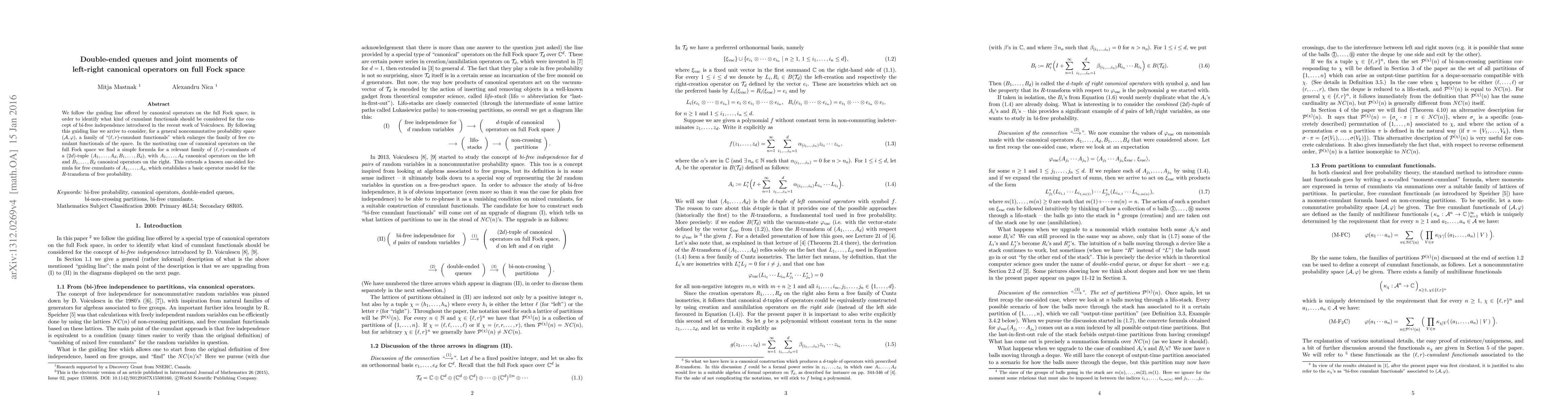 Research explores bi-free independence in full Fock space using canonical operators, developing a formula for (l,r)-cumulants of 2d-tuples, extending one-sided free cumulant formulas.