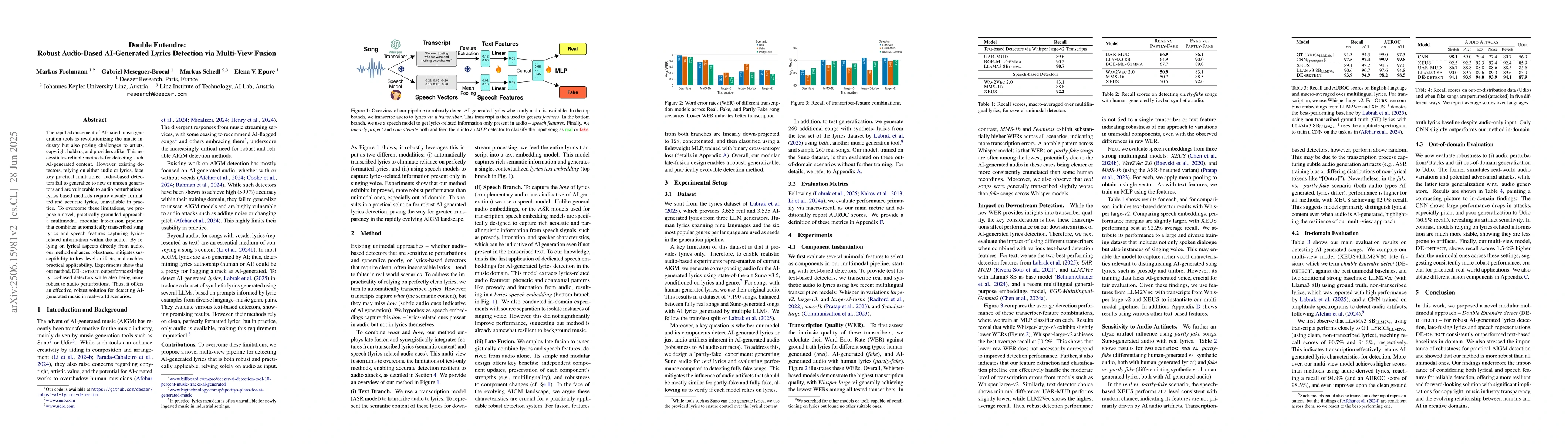 The development and evaluation of a multimodal feature combination that improves the performance of AI-generated lyrics detection.