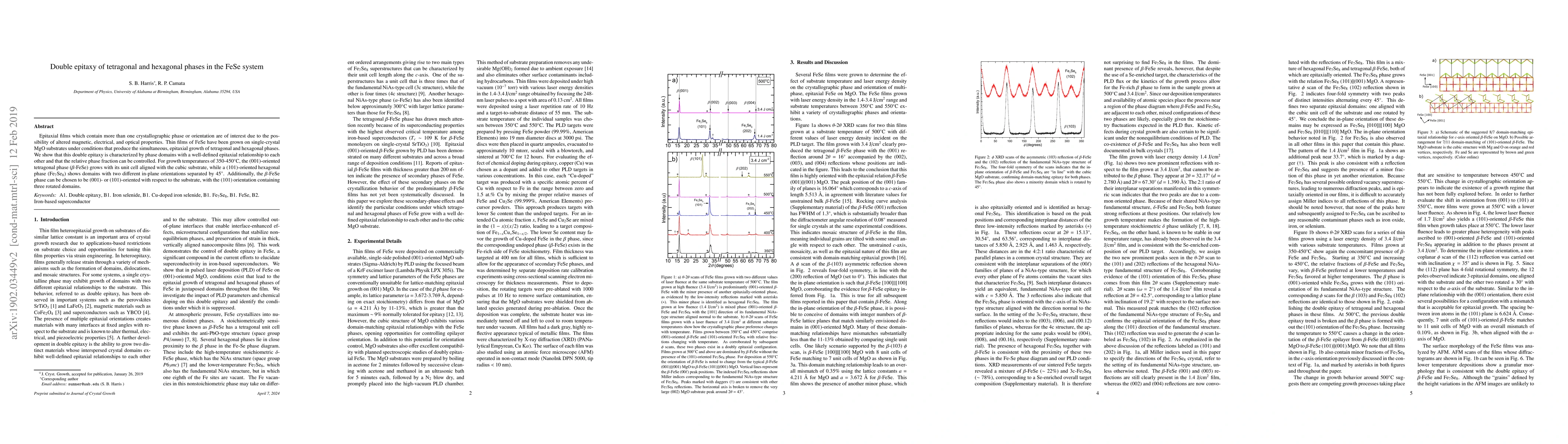 This study explores the simultaneous epitaxial growth of tetragonal and hexagonal phases in FeSe thin films on MgO substrates, revealing distinct phase domains with controlled relative fractions and a well-defined epitaxial relationship, with varying orientations based on growth temperature.