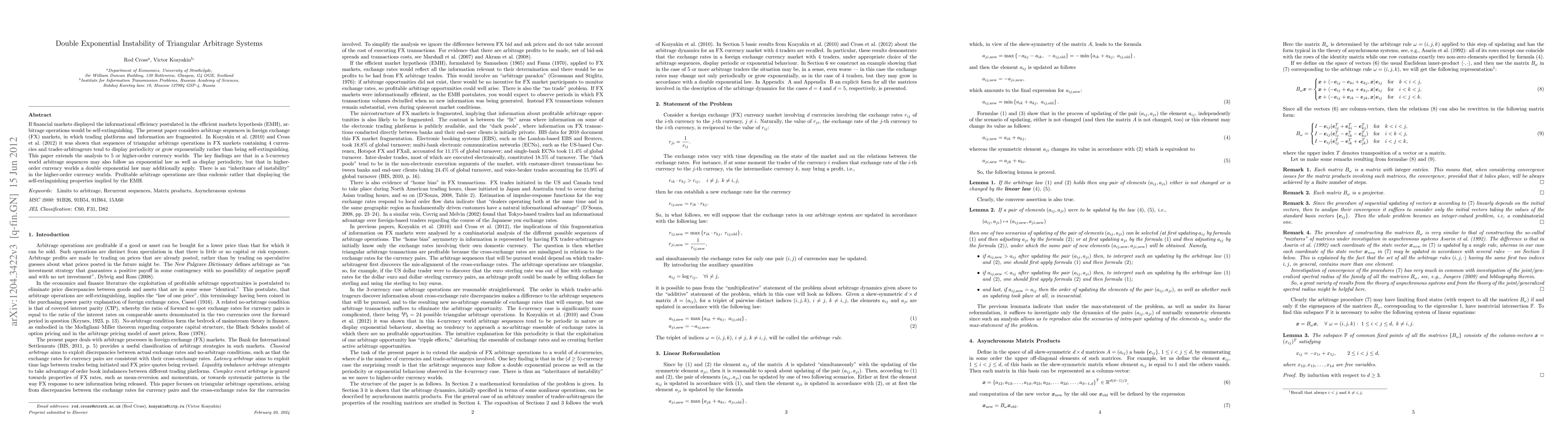 This paper investigates the instability of triangular arbitrage systems in foreign exchange markets with 5 or more currencies, finding that higher-order currency systems exhibit double exponential growth and periodicity, contradicting the self-extinguishing nature predicted by the efficient markets hypothesis.