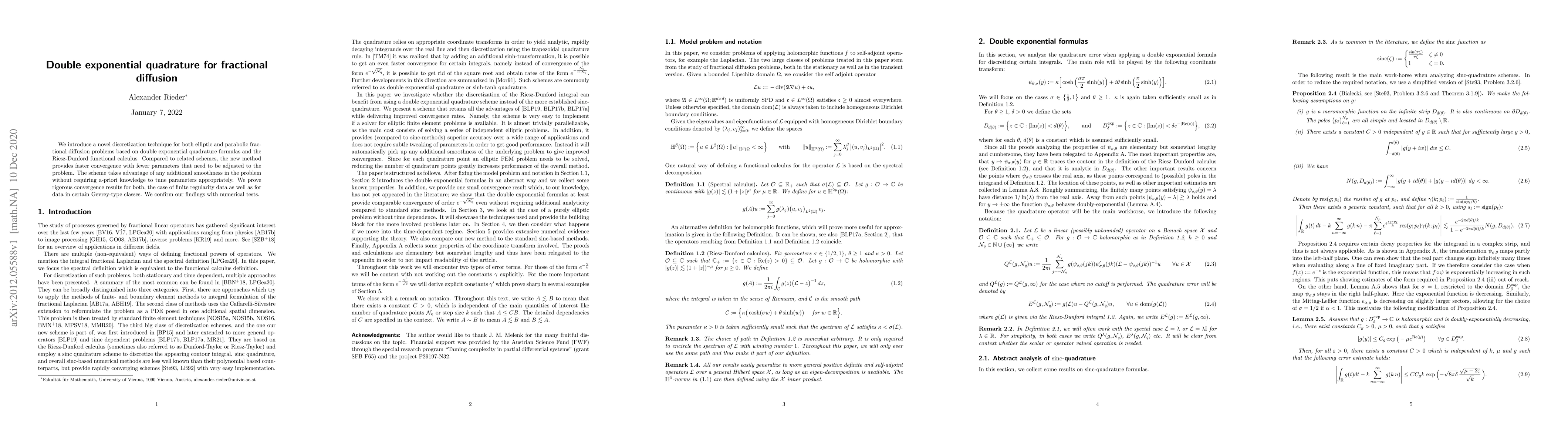 We introduce a novel discretization technique for both elliptic and parabolic fractional diffusion problems based on double exponential quadrature formulas and the Riesz-Dunford functional calculus. Compared to related schemes, the new method provides faster convergence with fewer parameters that need to be adjusted to the problem. The scheme takes advantage of any additional smoothness in the problem without requiring a-priori knowledge to tune parameters appropriately. We prove rigorous convergence results for both, the case of finite regularity data as well as for data in certain Gevrey-type classes. We confirm our findings with numerical tests.