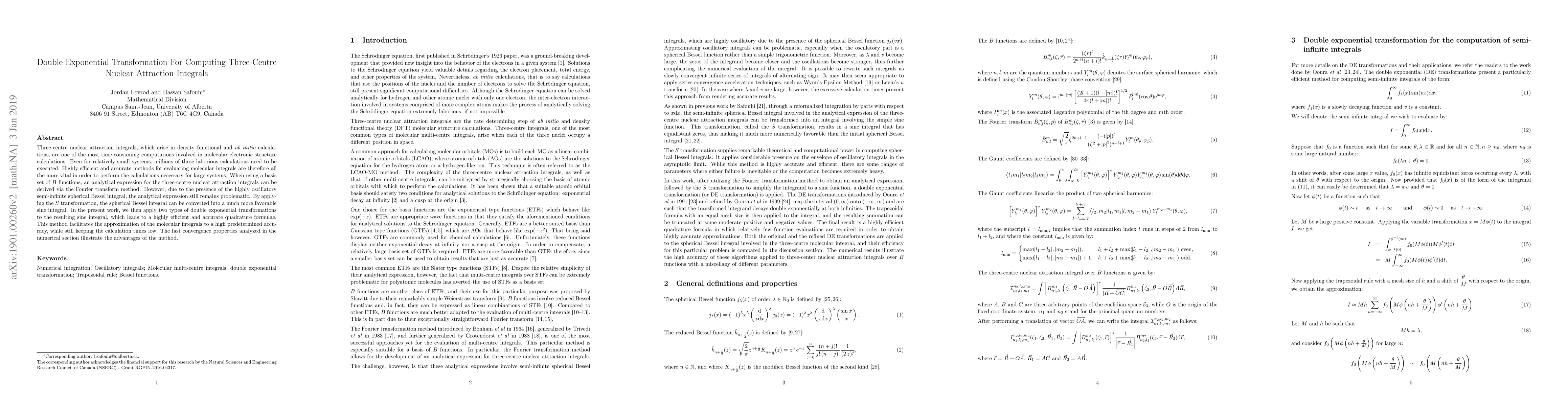 Researchers developed a new method to efficiently calculate three-centre nuclear attraction integrals using double exponential transformations, reducing calculation times while maintaining high accuracy for large molecular systems.