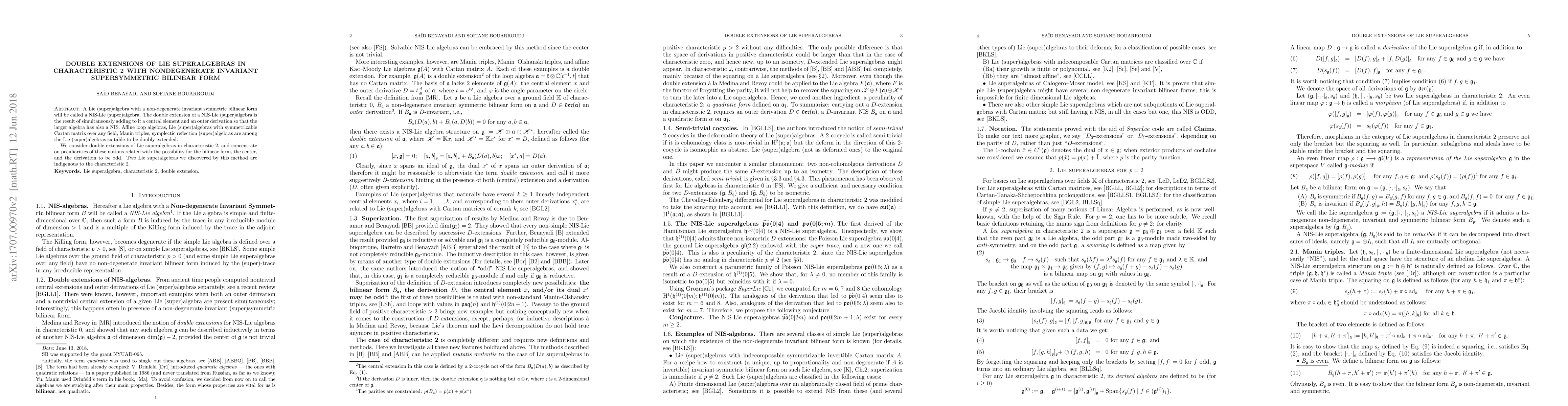 Summary: This paper investigates double extensions of NIS-Lie superalgebras in characteristic 2, focusing on the unique aspects when the bilinear form, center, and derivation are odd. It discovers two characteristic 2-specific Lie superalgebras through this method.